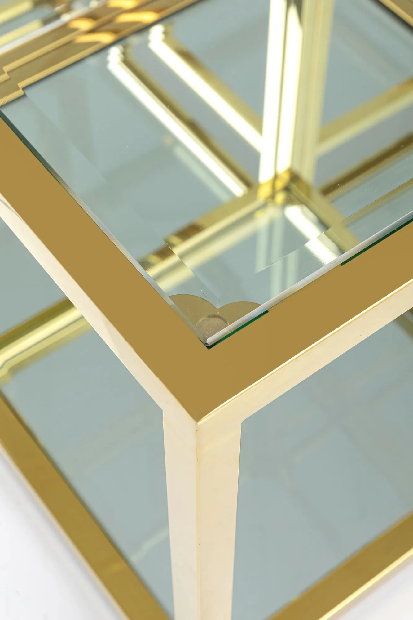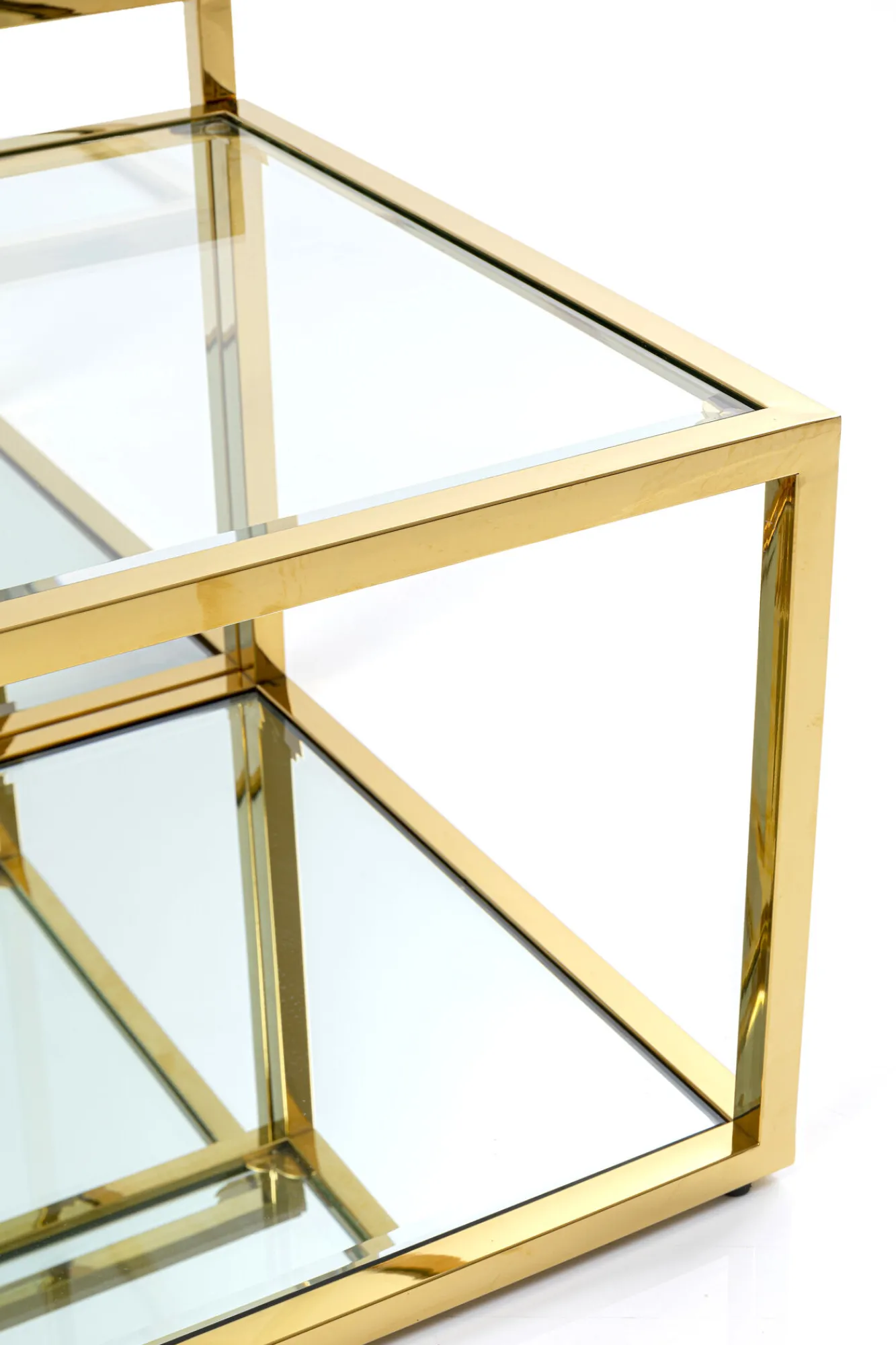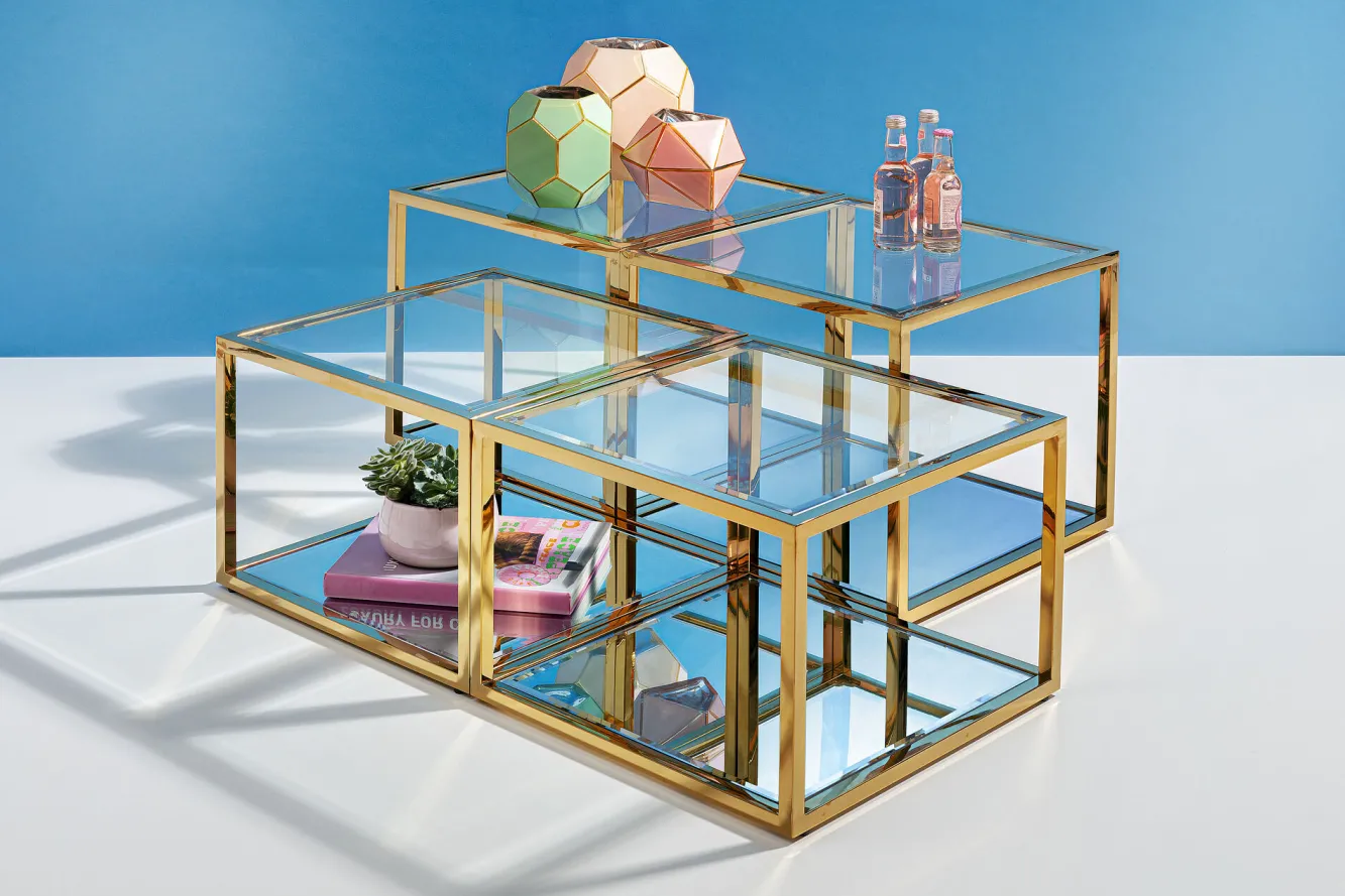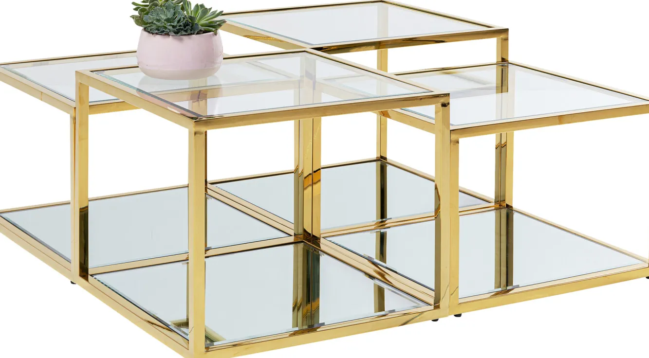 Zestaw czterech stolików kawowych Orion złote Rama: stal nierdzewna polerowana, Blat: 8 mm szkło hartowane.Produkt j…