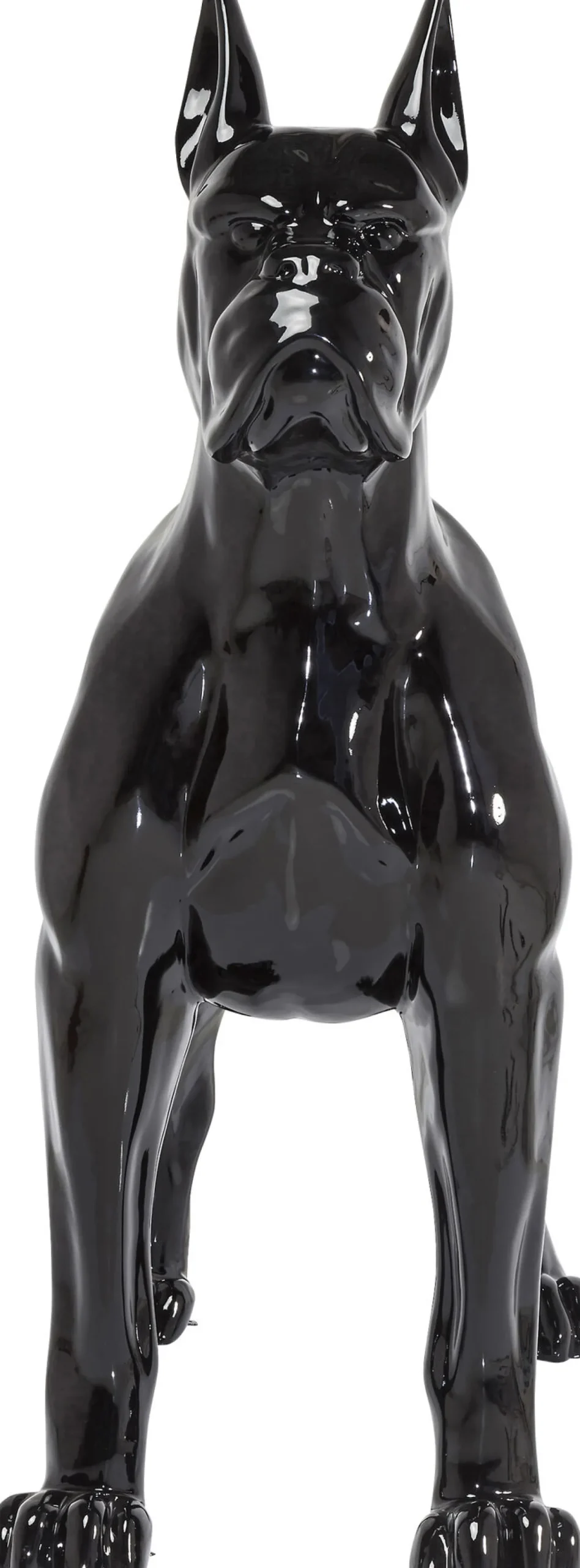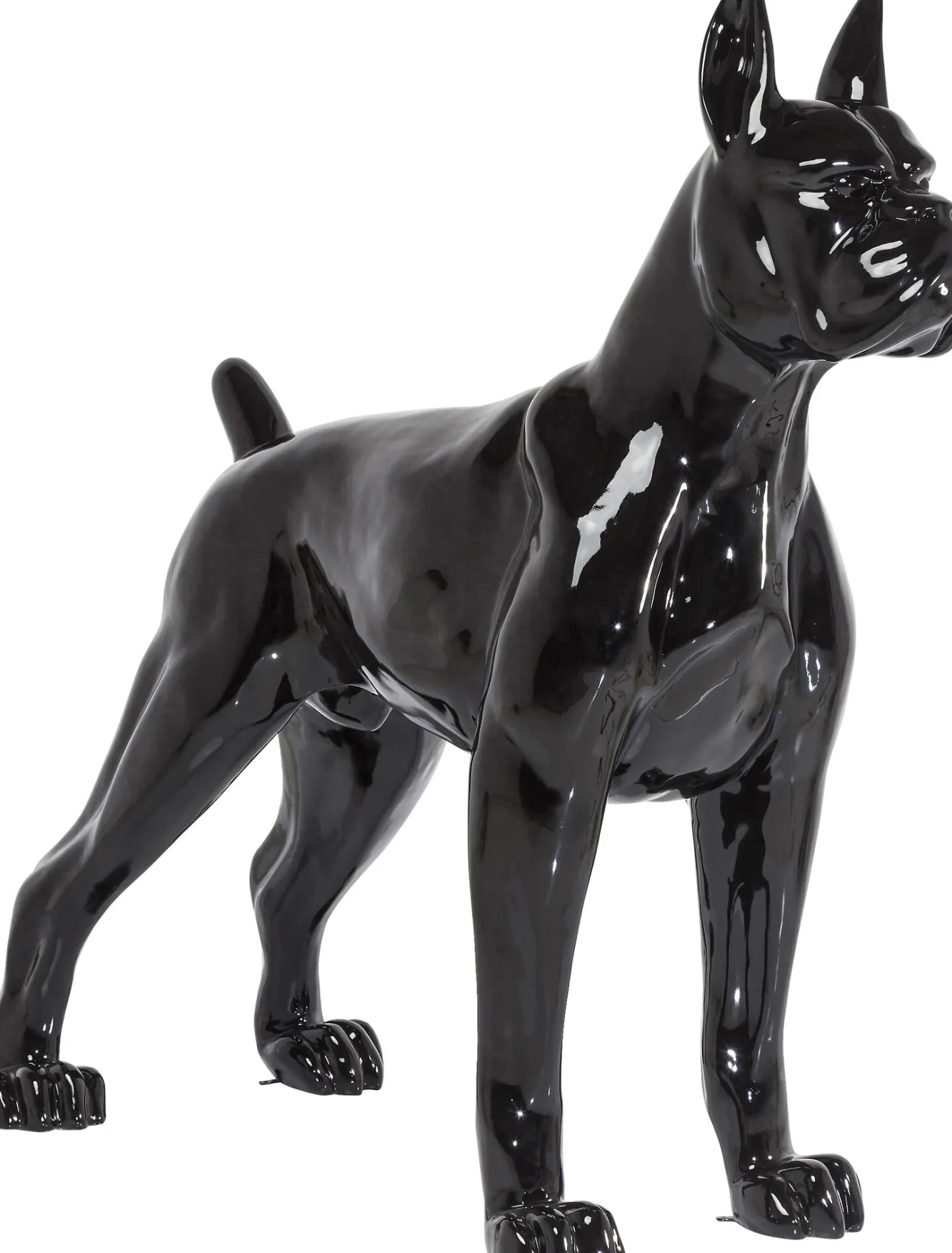 Awangardowe dekoracje stojące Toto XL oferują szeroki wybór kolorystyczny – tutaj czarna figura psa o wysokości 180 cm.