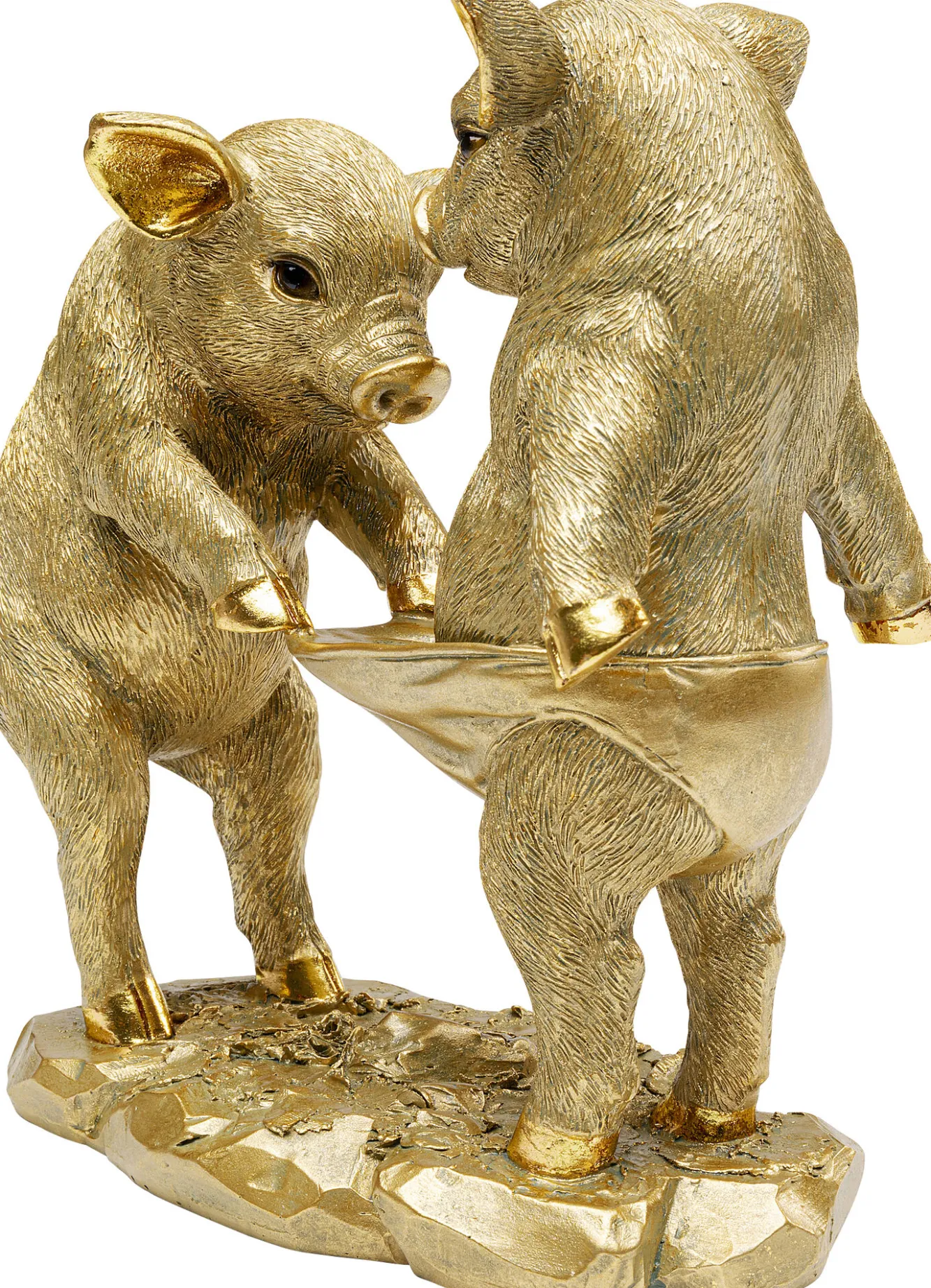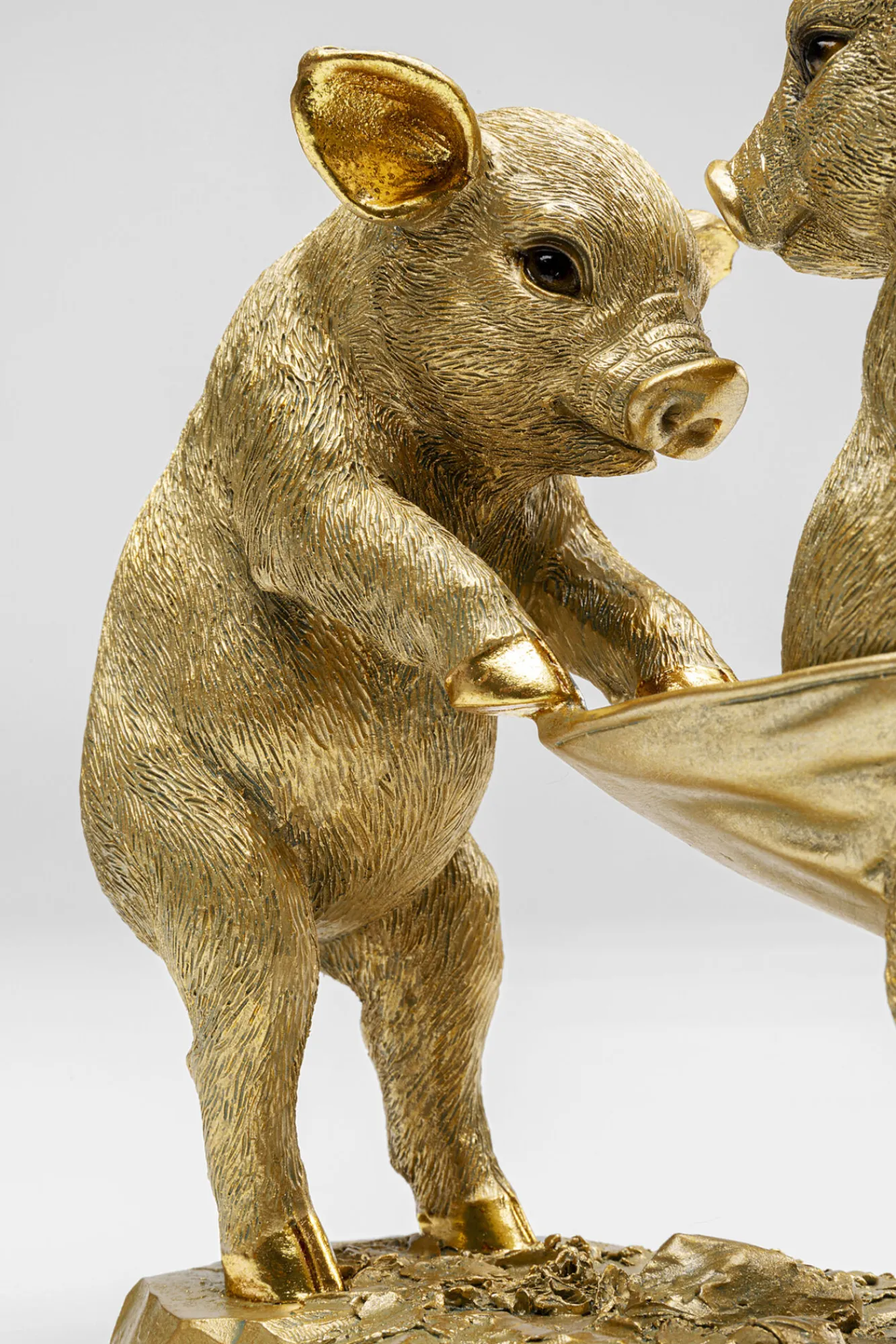 Figurka dekoracyjna w kolorze złotym motyw zwierzęcy świnki 21×20 cm