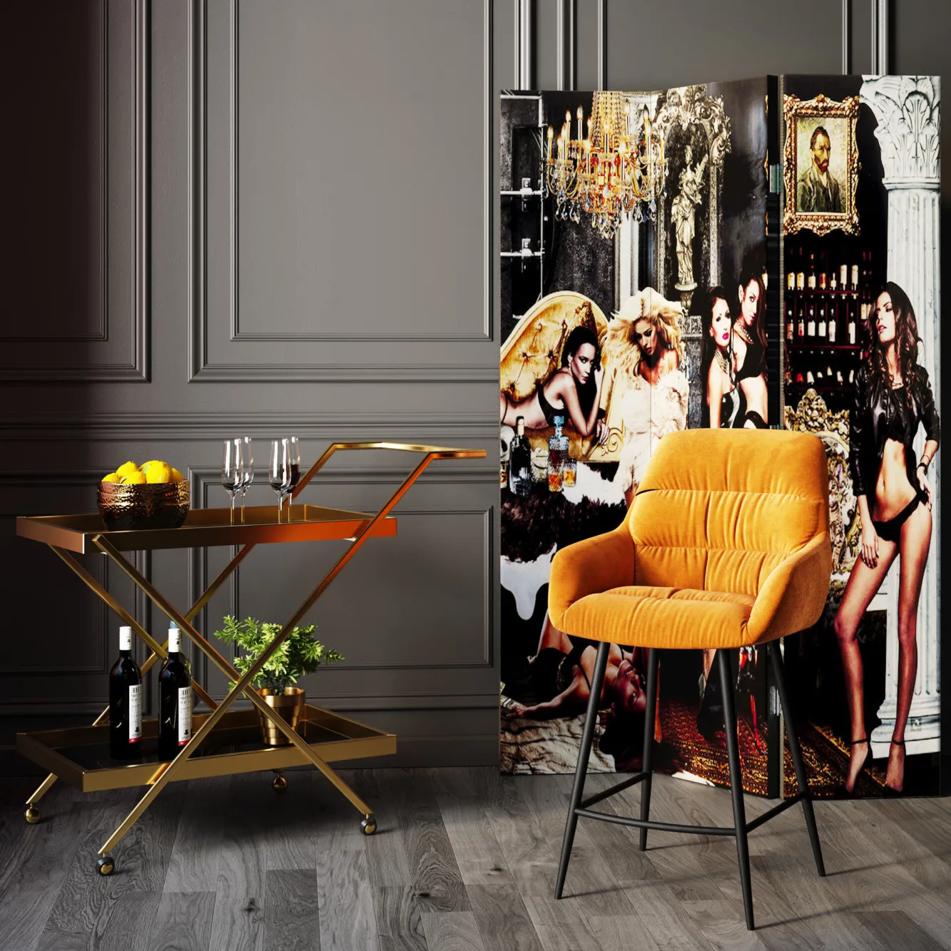 Hoker aksamitny żółty z oparciem i podłokietnikami 69 cm
