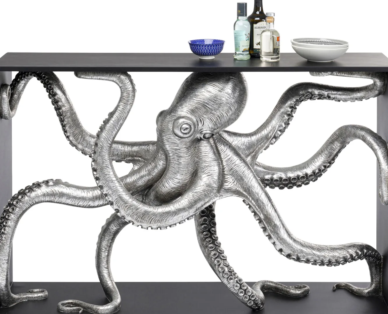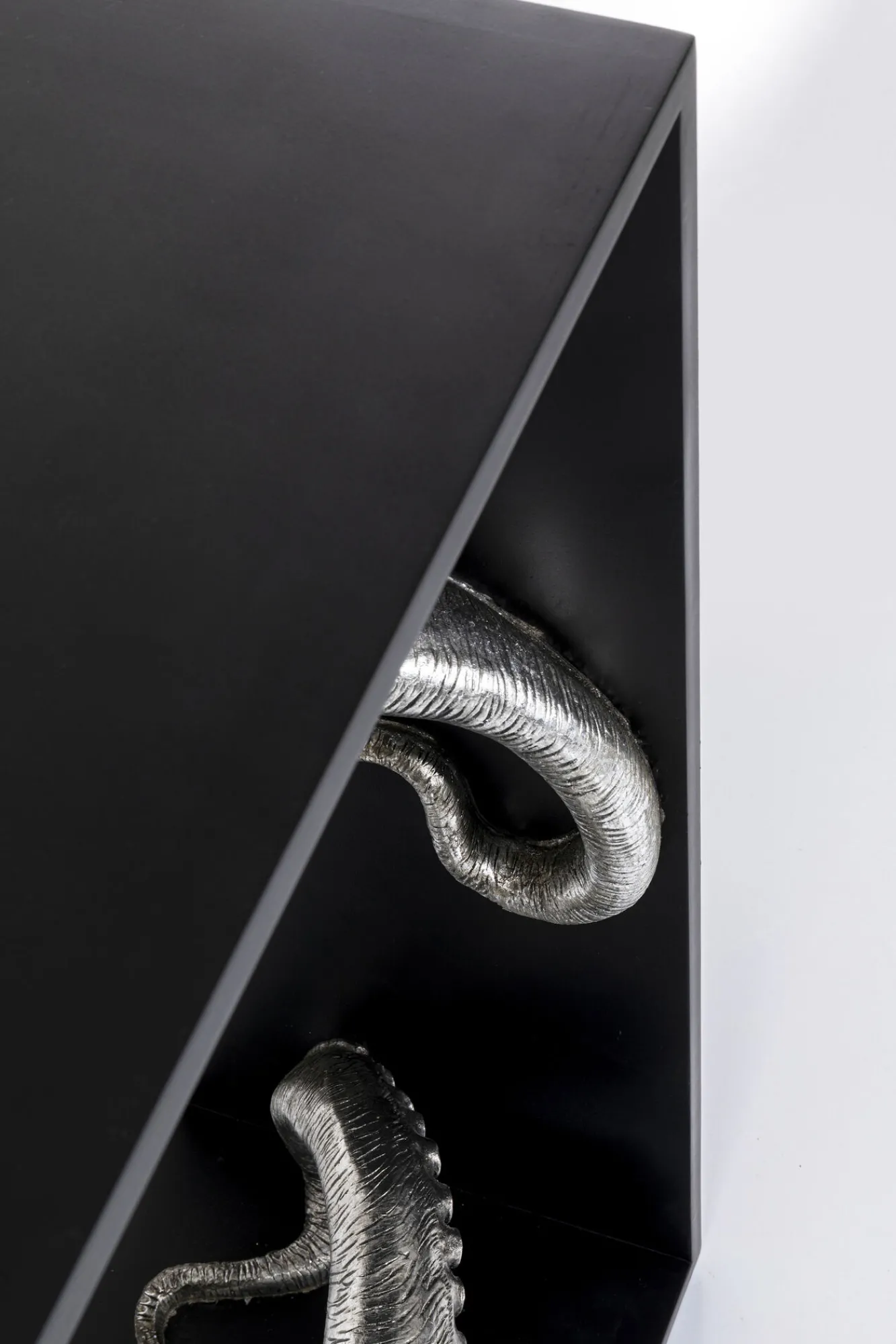 Konsola Calmar 124×30 cm czarno-srebrna Sklejka lakierowana.Dekoracja: polirezyna, ręczne wykonanie.Ręczne wykonanie. …