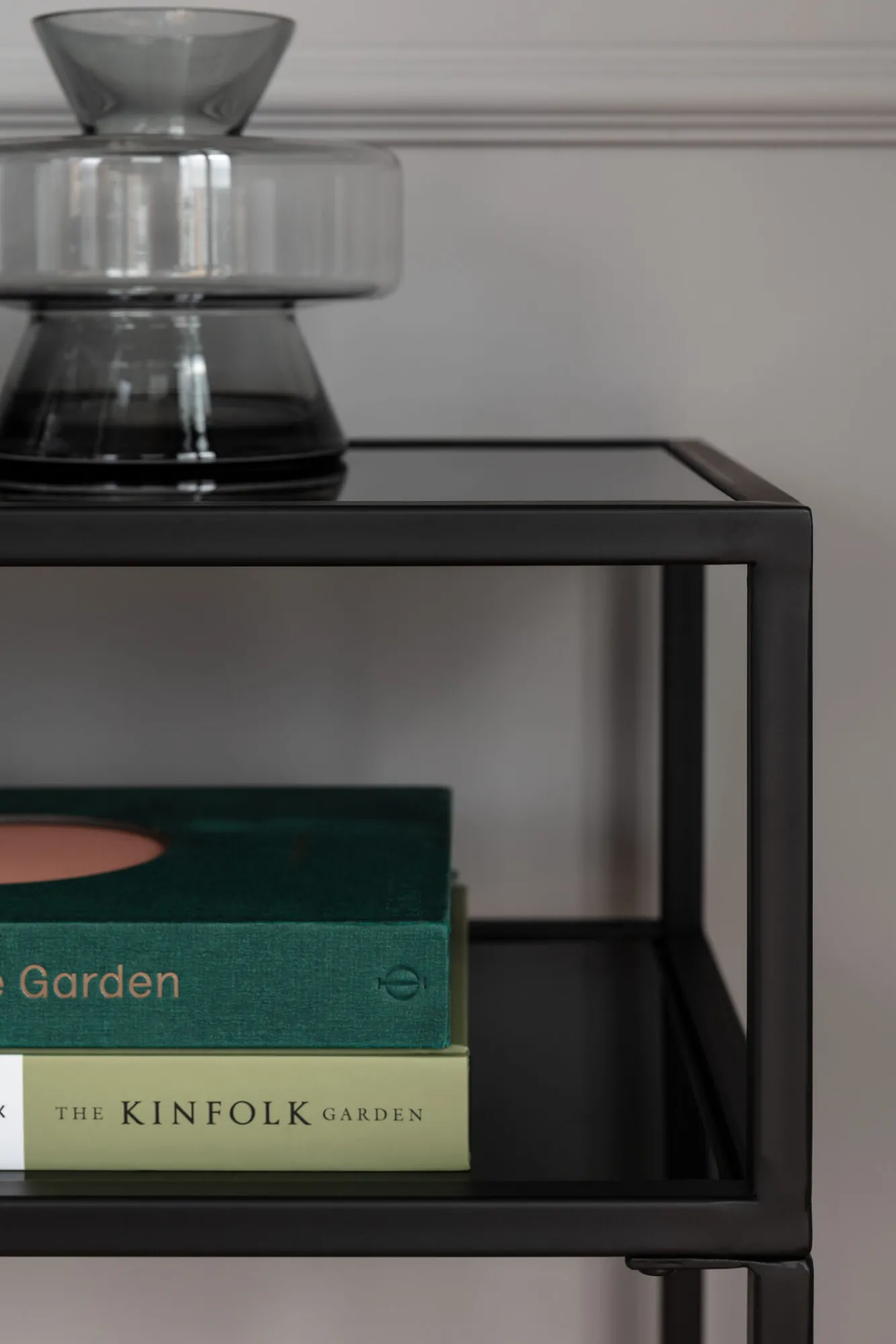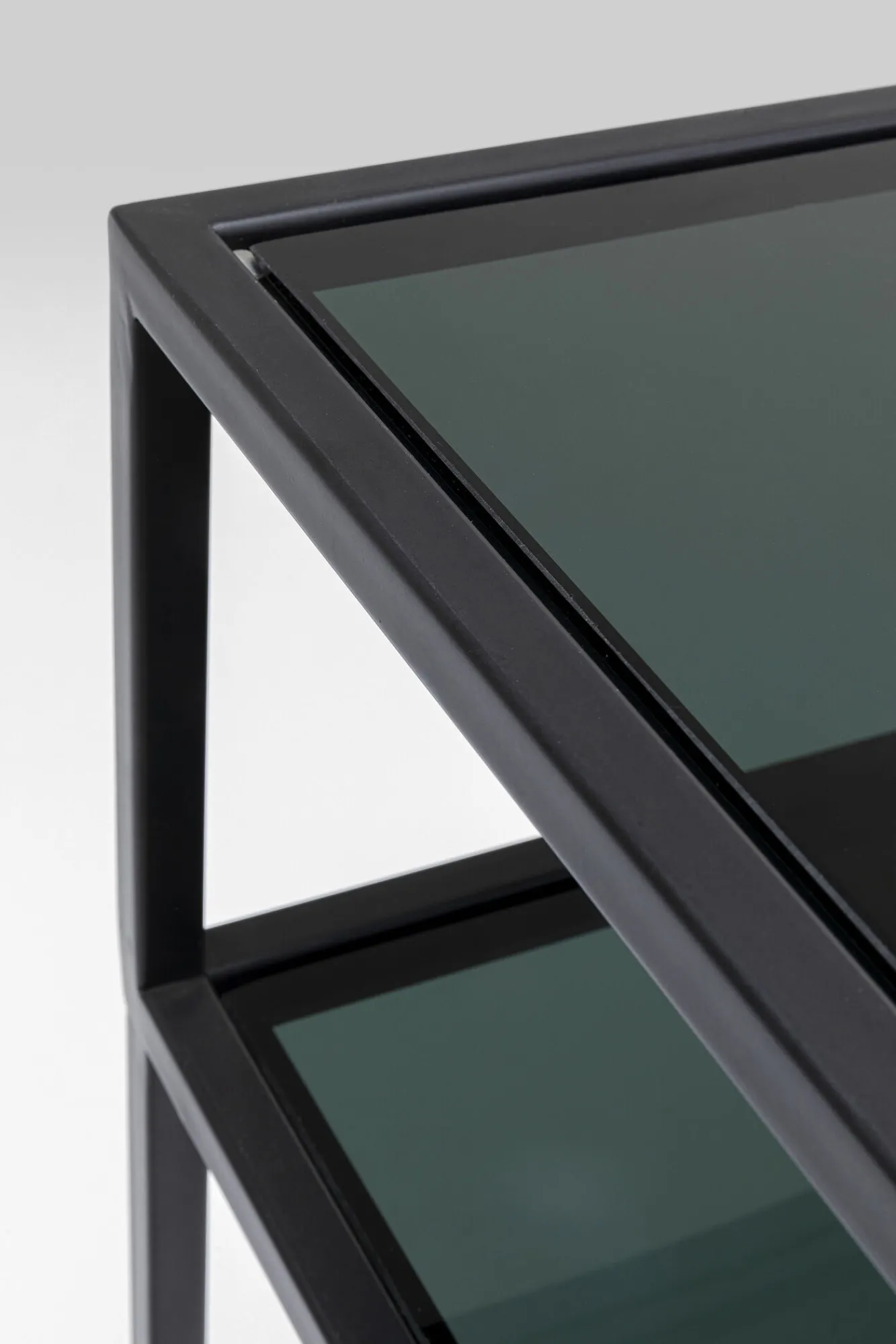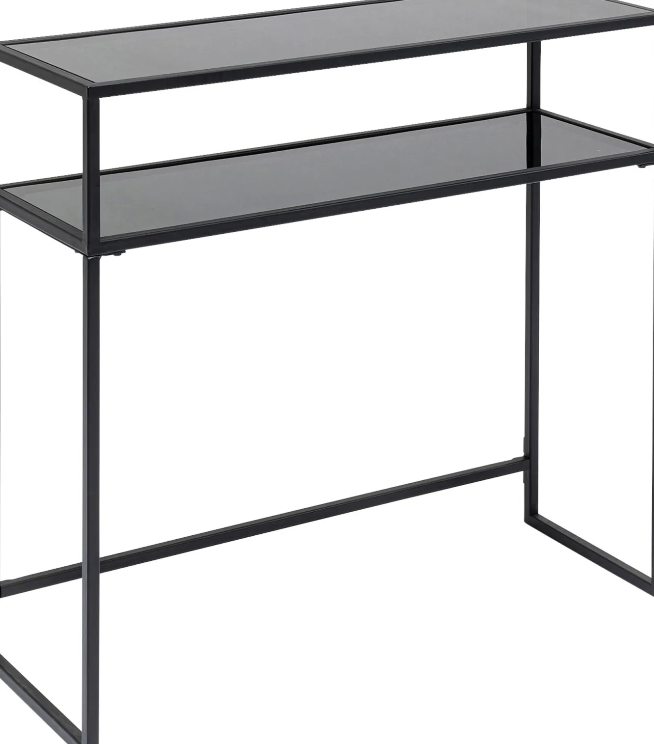 Konsola Loft 80×30 cm czarna Podstawa, rama: stal malowana proszkowo.Blat, półka: szkło bezpieczne 5 mm.