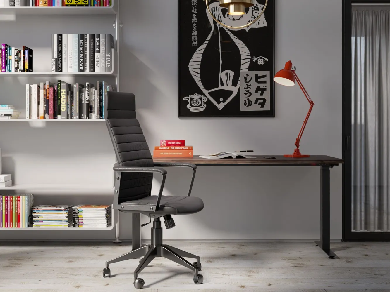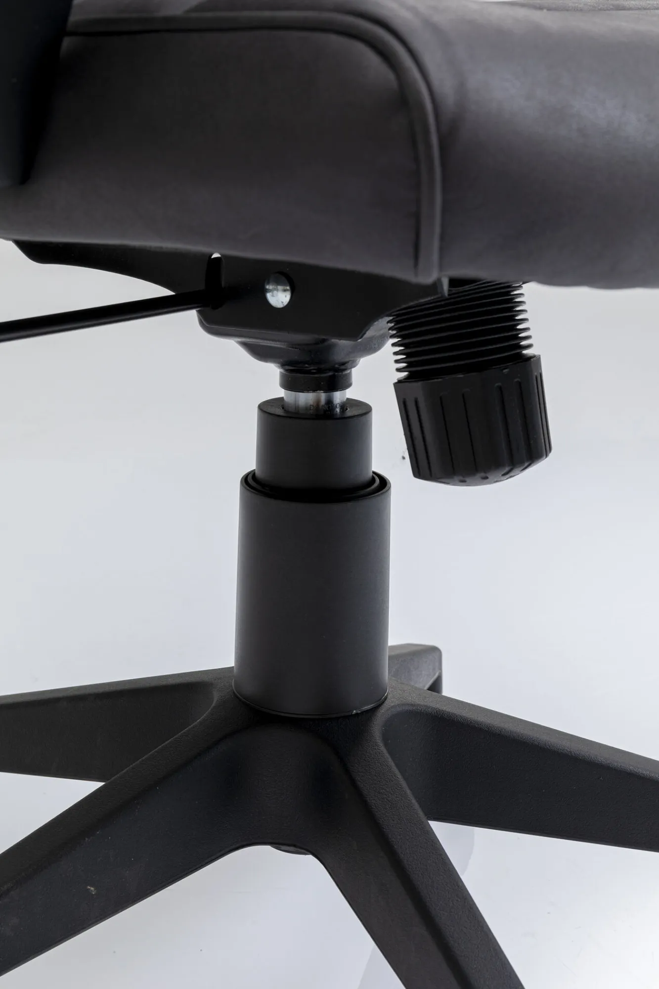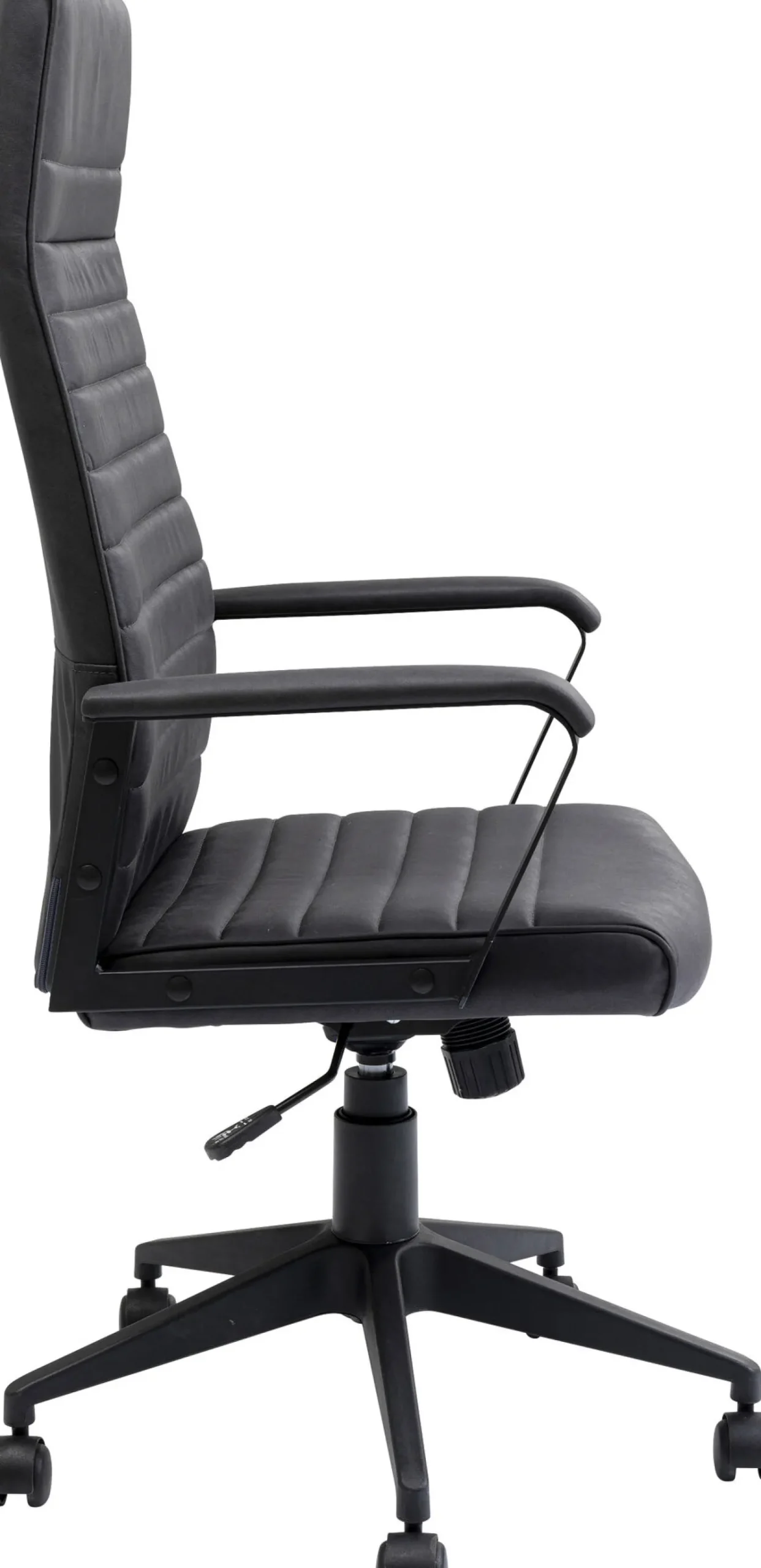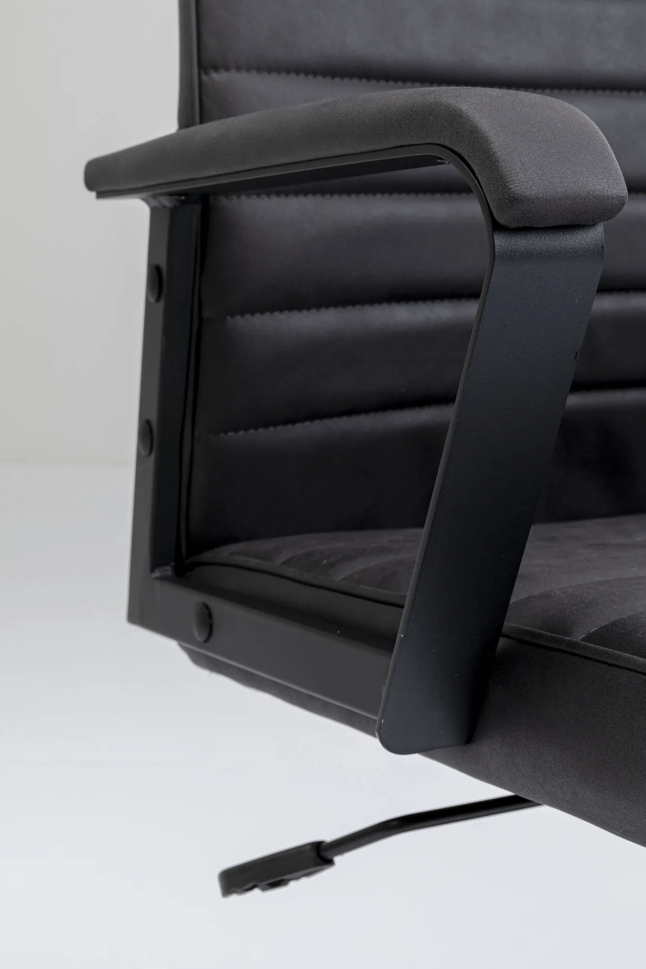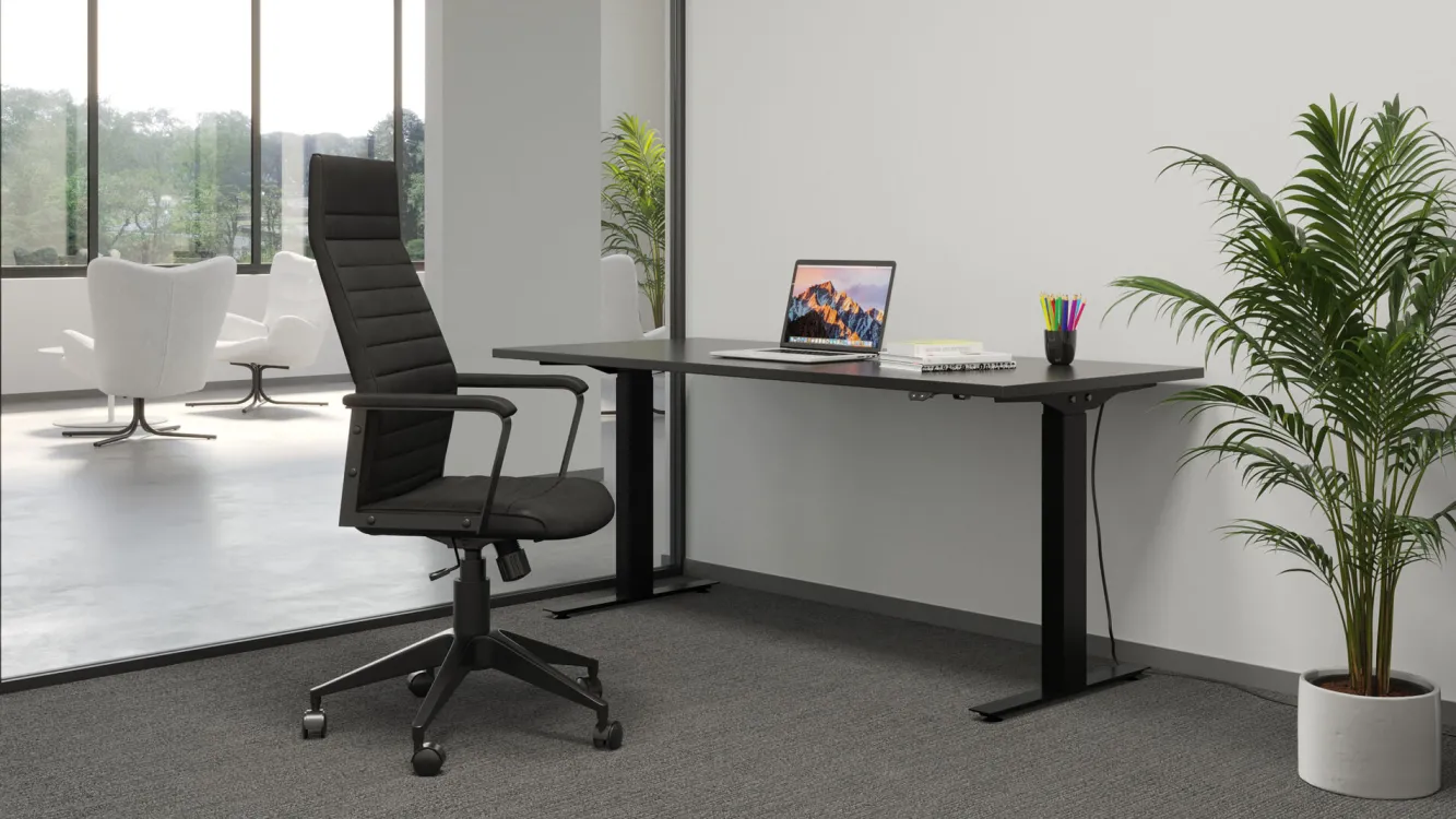 Krzesła biurowez podłokietnikami w stylu nowoczesnym Labora High dostępne są w kilkuwariantach kolorystycznych – tutaj czarne krzesło z regulowaną wysokością iczarnymi nogami.