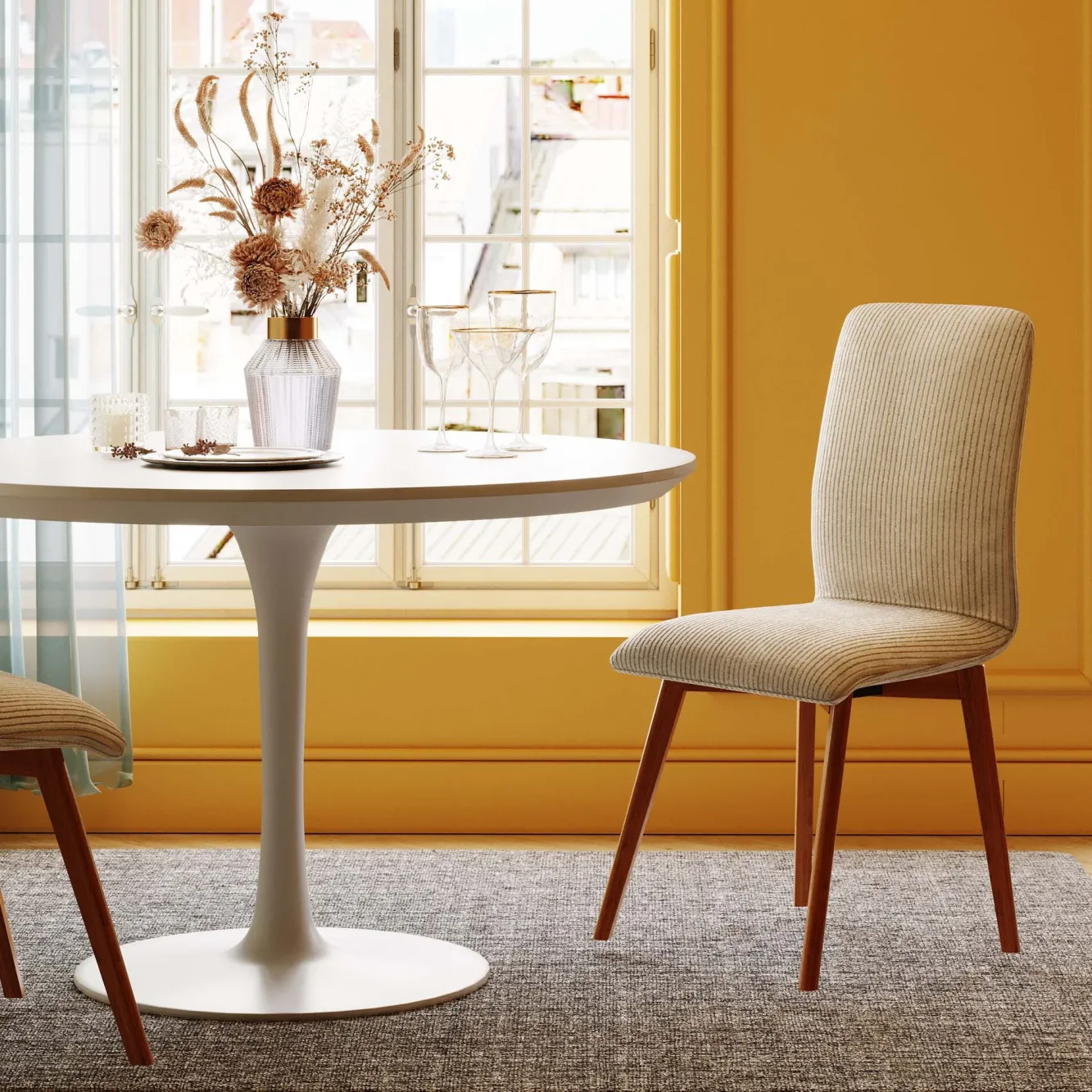 Krzesło do jadalni tapicerka kremowa nogi dębowe olejowane 44×92 cm