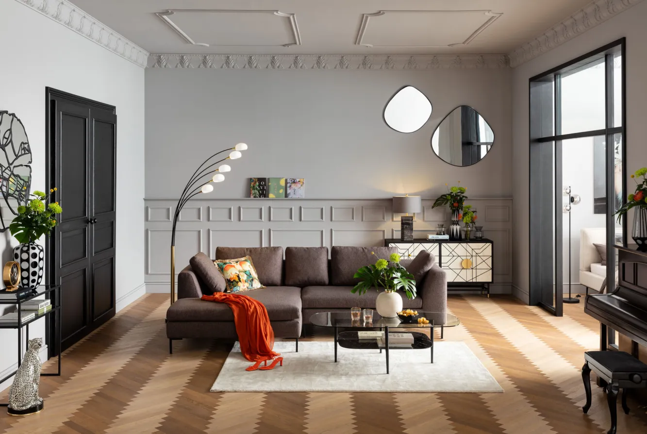 Stelaż: stal mosiężna oraz malowana proszkowo.