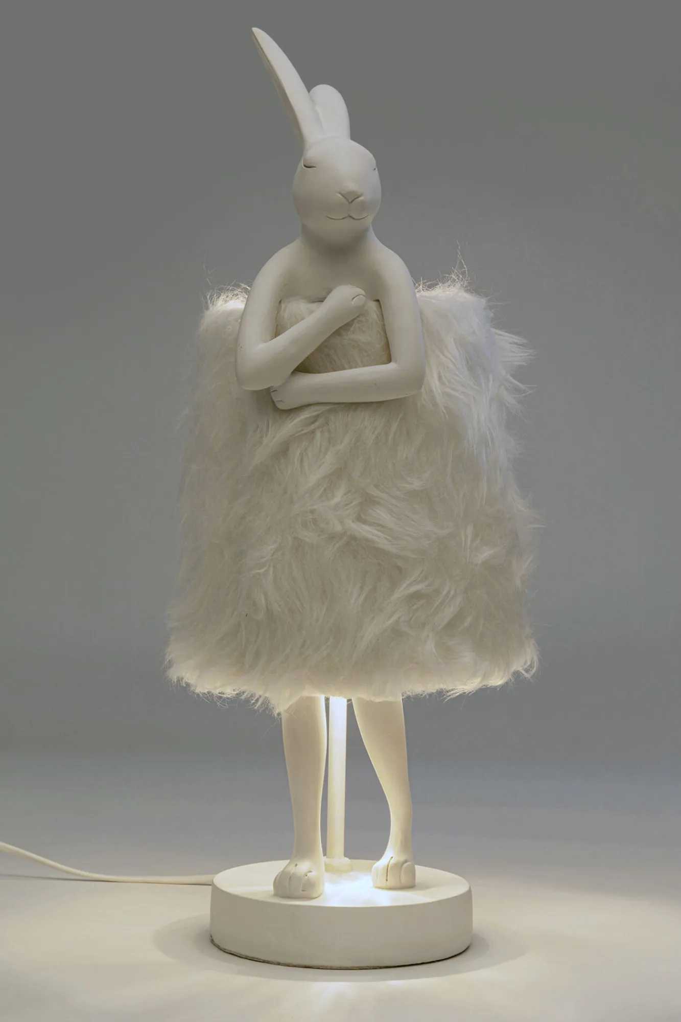 Lampa stołowa biała królik abażur futrzasty 50 cm Dekoracja (królik): polirezyna.Stelaż: stal malowana proszkowo.A…