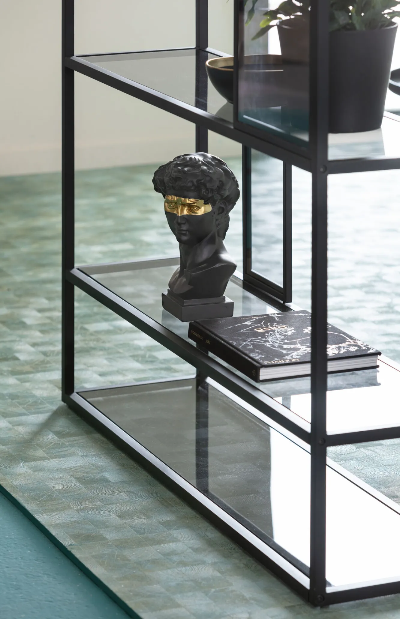 Regał stojący półki szklane przydymione rama czarna stalowa 115×195 cm Półki: szkło hartowane, bezpieczne.Rama, n…