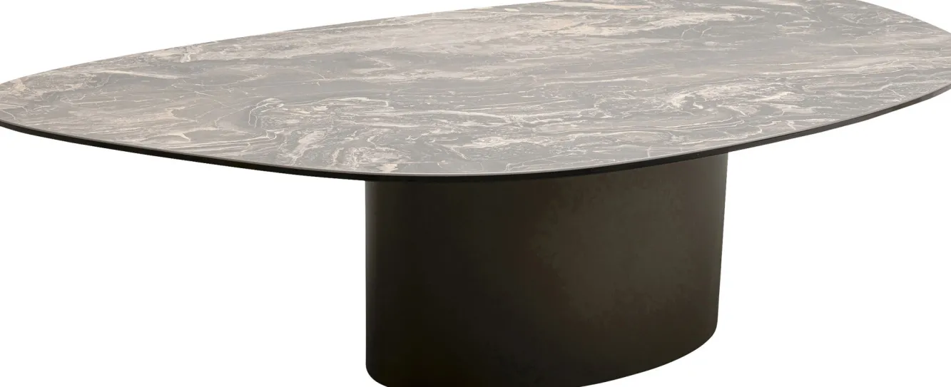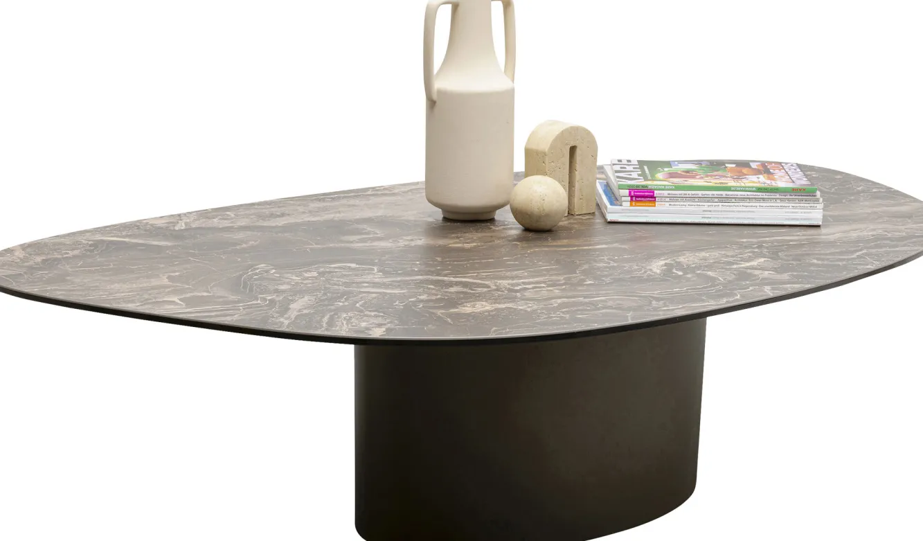 Stolik kawowy brązowy blat kamionkowy podstawa stalowa 150×86 cm