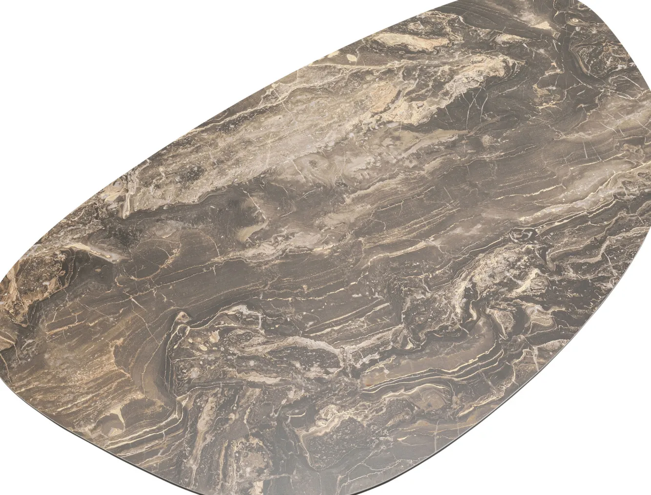 Stolik kawowy brązowy blat kamionkowy podstawa stalowa 150×86 cm Blat: kamionka lakierowana (3 mm), szkło hartowane, b…