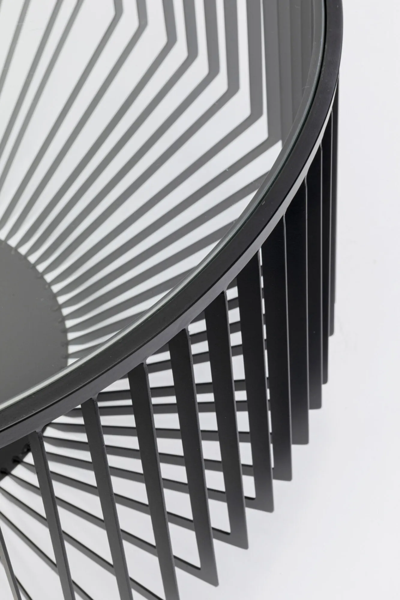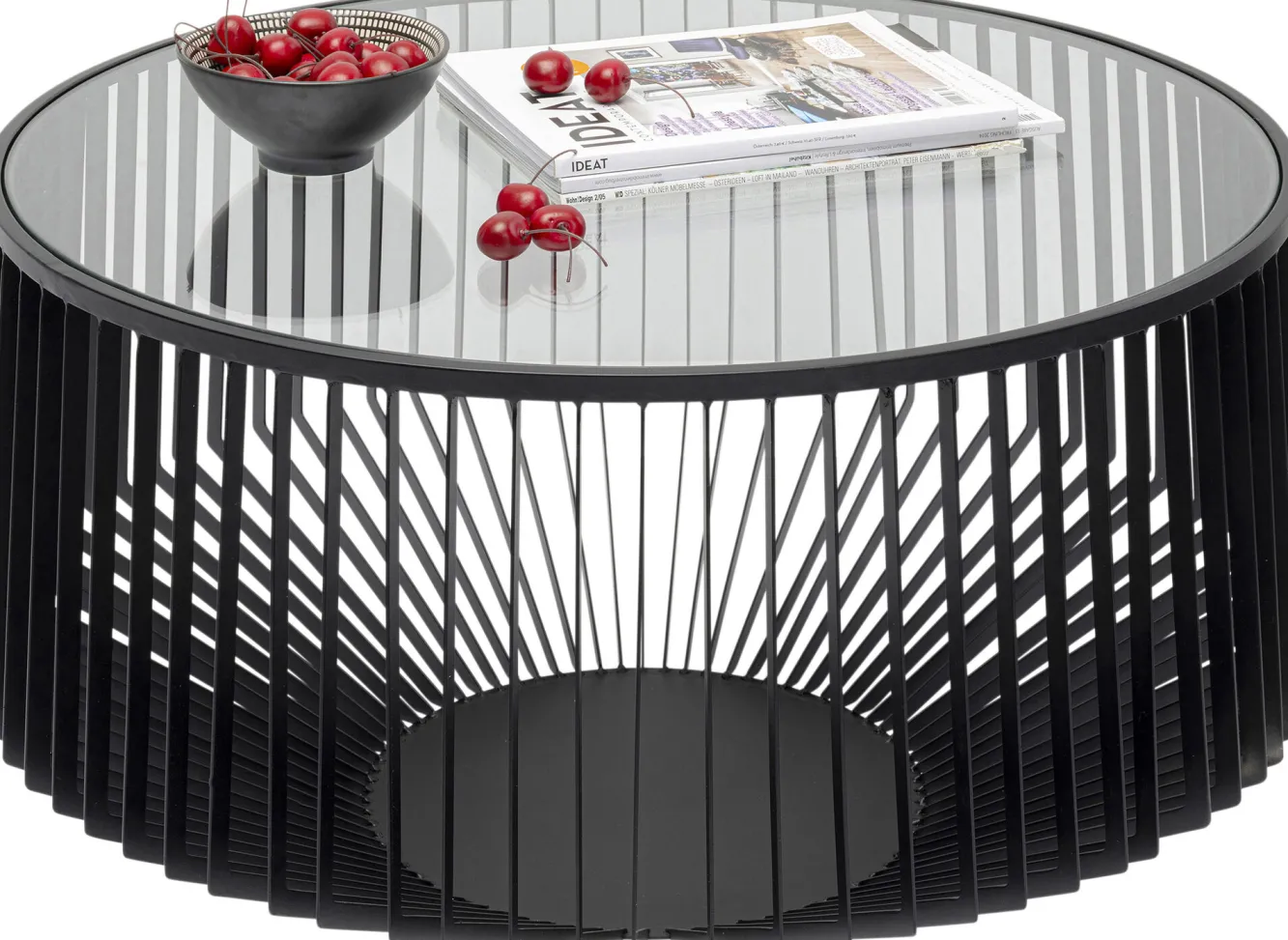 Stolik kawowy loft stal czarna i szkło transparentne Ø80 cm