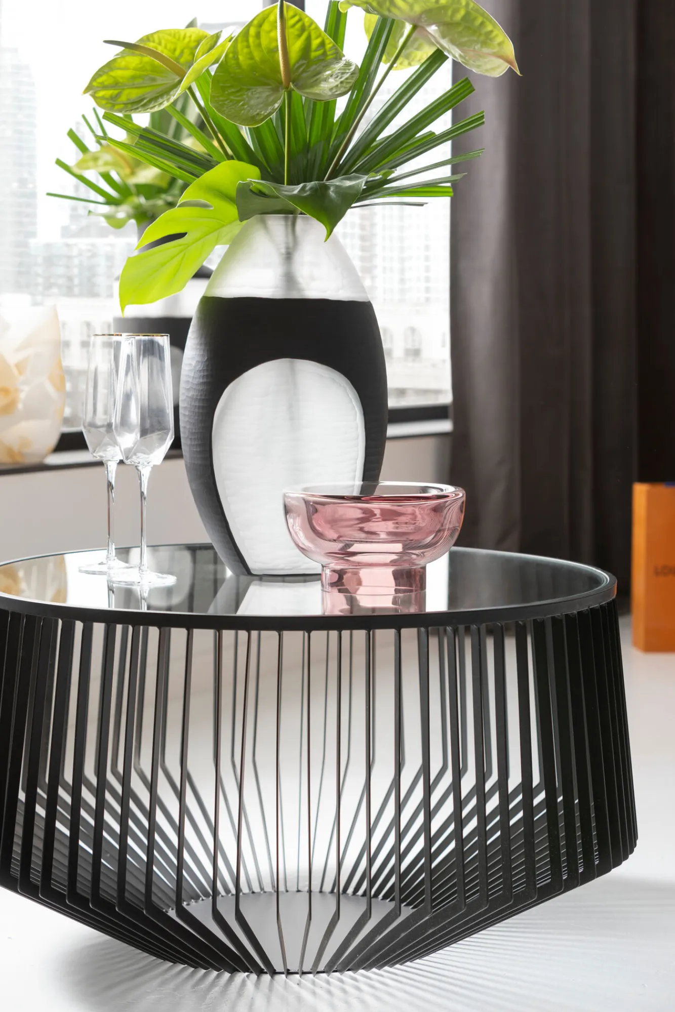 Stolik kawowy loft stal czarna i szkło transparentne Ø80 cm Podstawa: stal malowana proszkowo.Blat: szkło hartowane, …