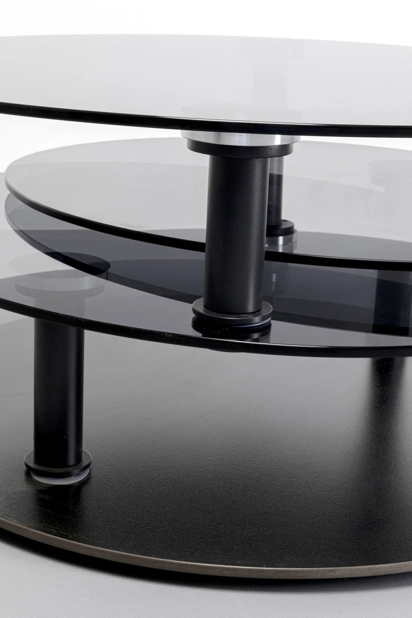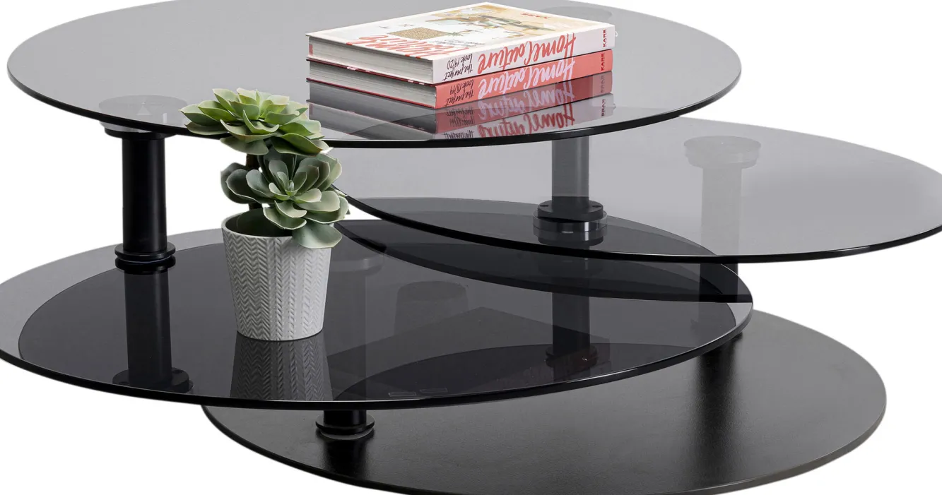 Stolik kawowy z obrotowymi szklanymi blatami Ø90 (170)x43 cm