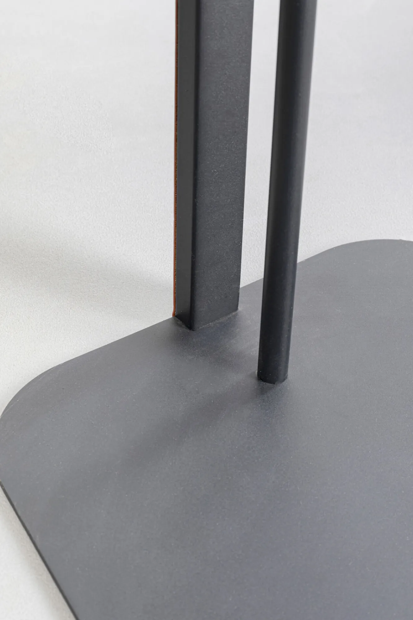 Stolik pomocniczy czarno-brązowy blat tapicerowany 61×39 cm Materiały: stal malowana proszkowo, ekoskóra (tkanina pok…