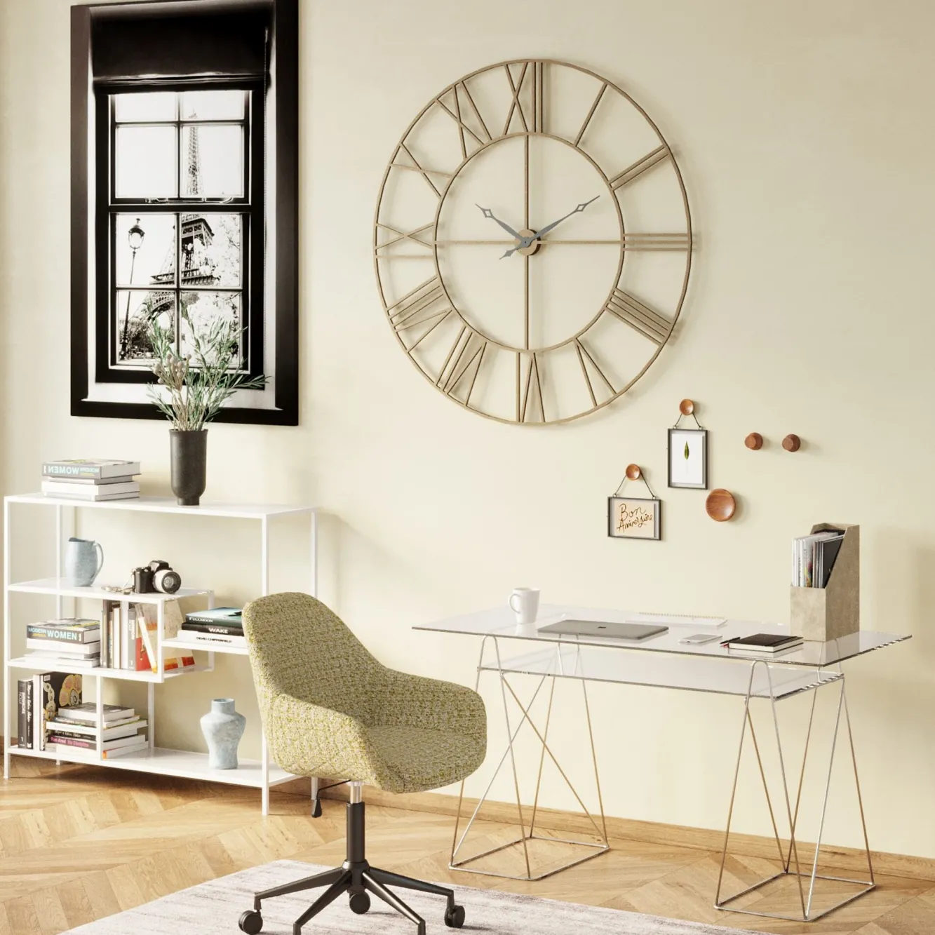 Która godzina? Teraz możesz mieć takie informacje na bieżąco w formacie XXL! Zegar Factory to fenomenalny, użyteczny dodatek do dużych pomieszczeń. Przejrzysty, pięknie się prezentuje i jest perfekcyjnie wykonany z trwałego, odpornego na zniszczenia materiału – żelaza. Jego średnica (120 cm) sprawia, że nawet w sporej wielkości wnętrzach nie pozostanie niezauważony.