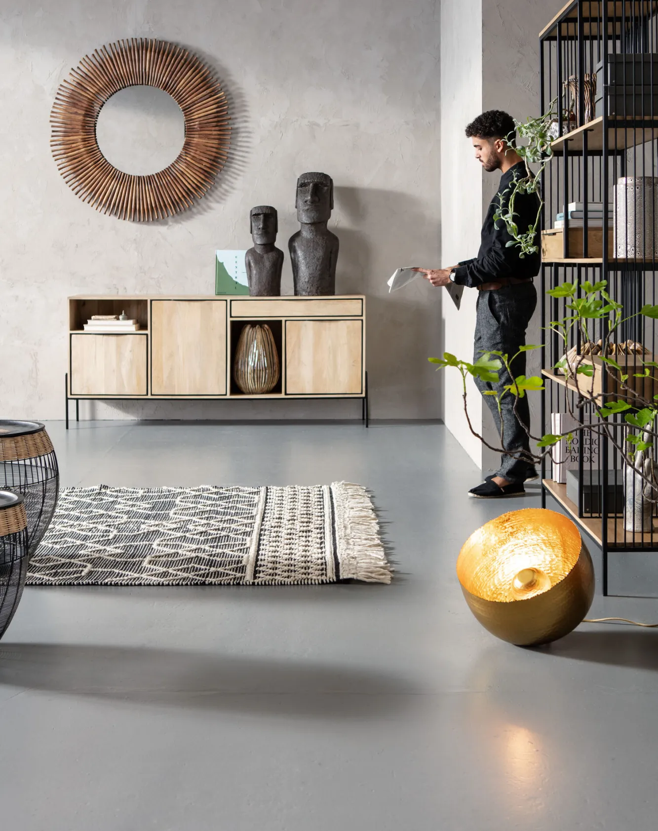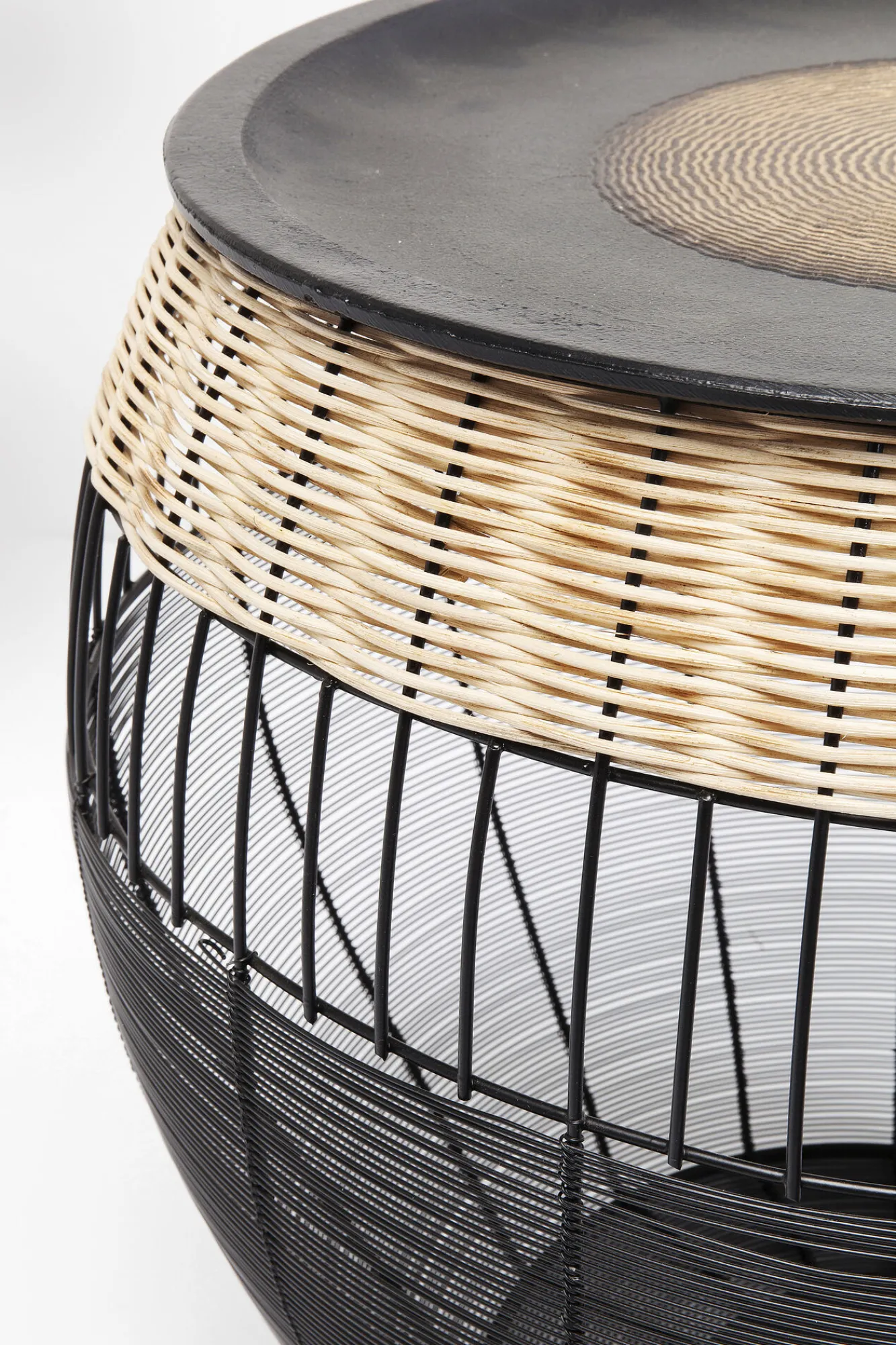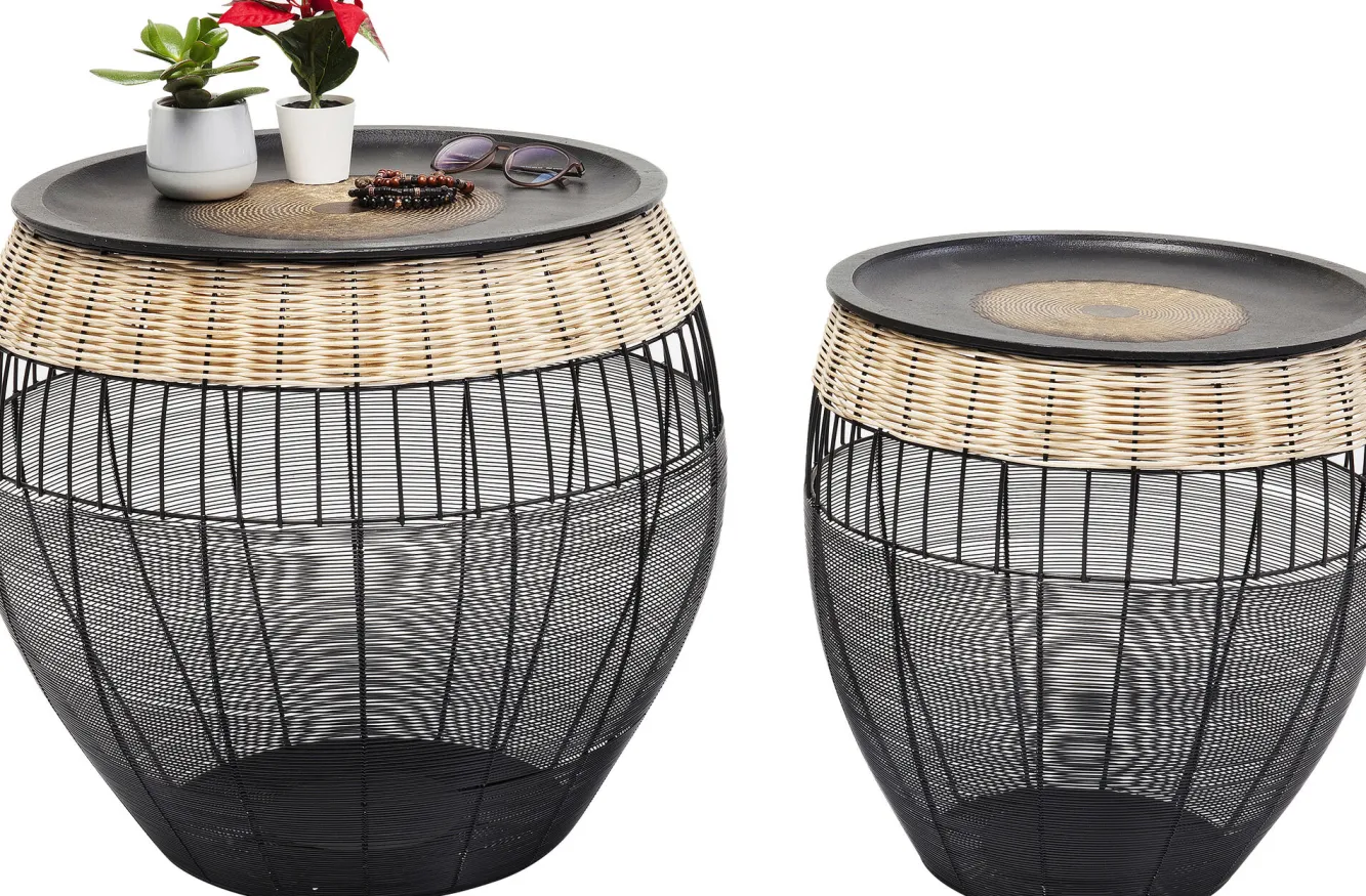 Zestaw dwóch stolików kawowych African Drums czarne Rama: stal malowana proszkowaBlat: aluminium lakierowane, rattanGr…
