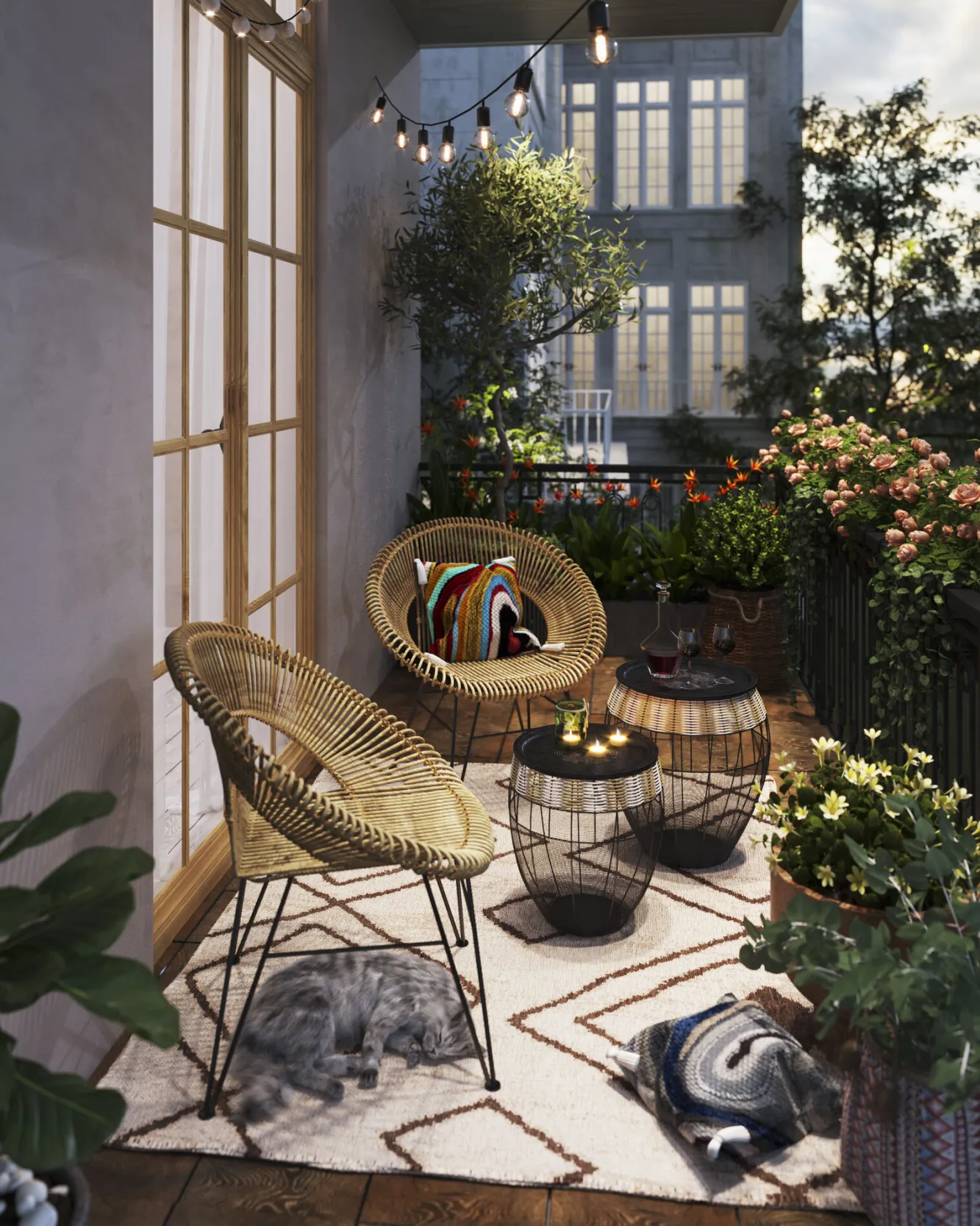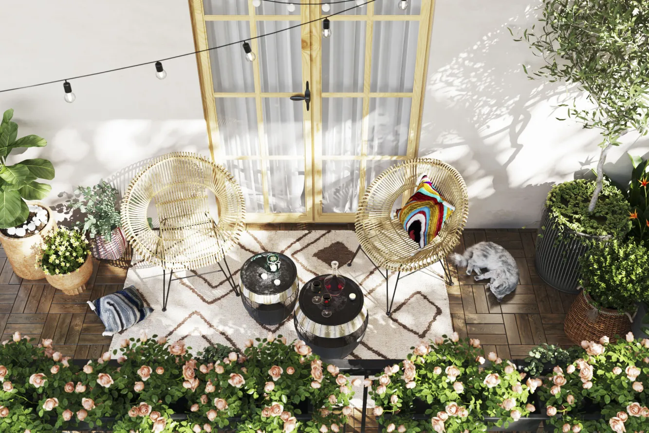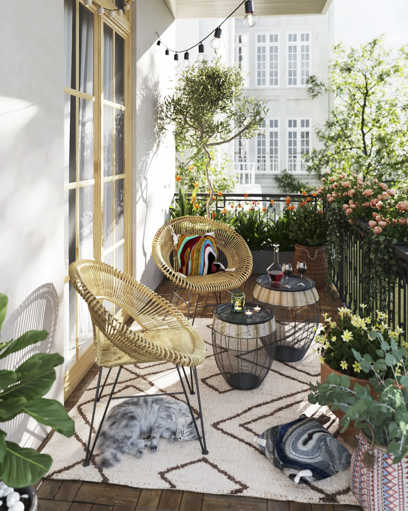 Zestaw dwóch stolików kawowych African Drums czarne Rama: stal malowana proszkowaBlat: aluminium lakierowane, rattanGr…
