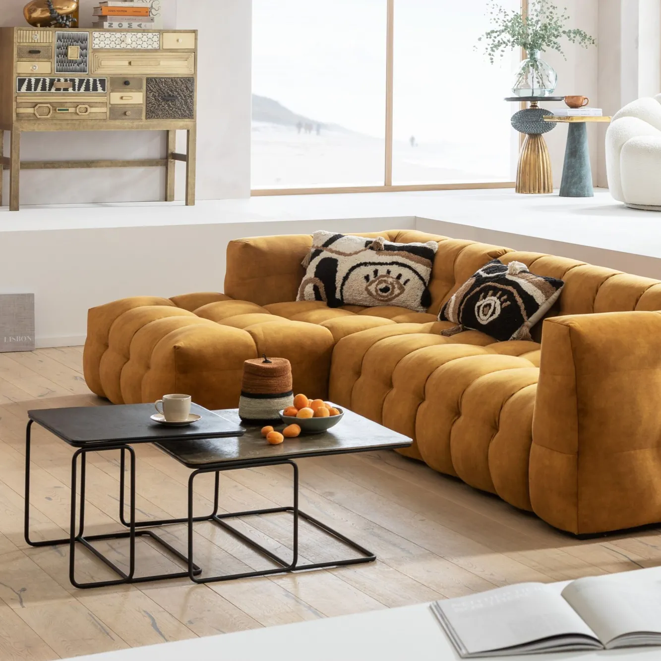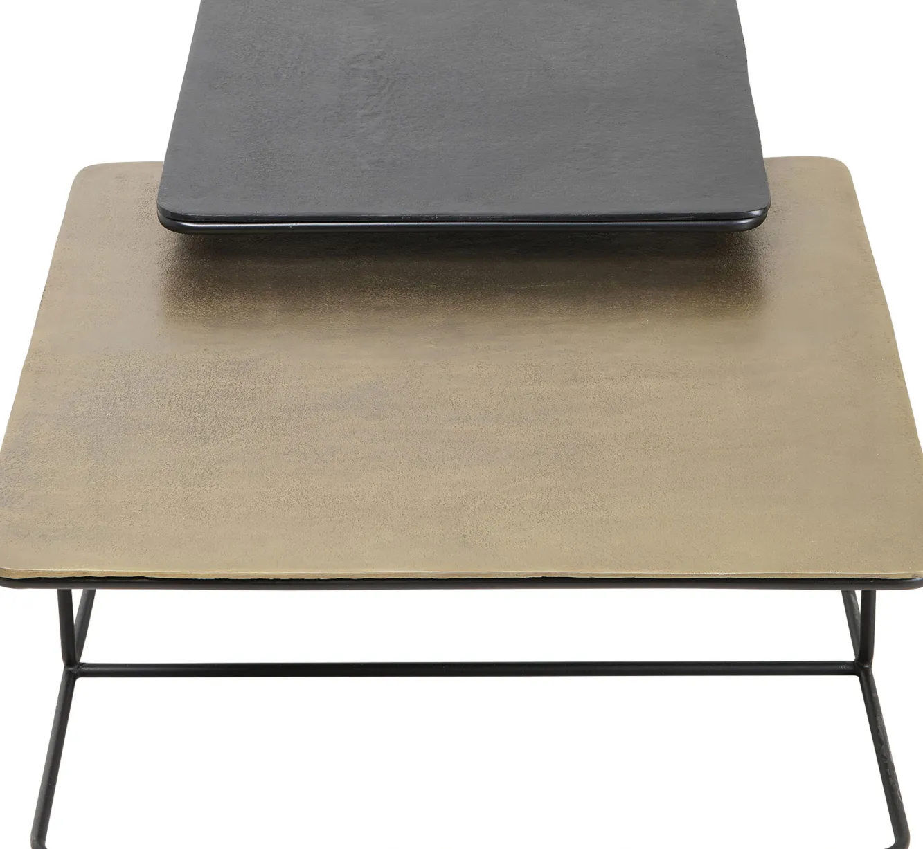 Zestaw dwóch stolików kawowych aluminium złoty i czarny Blaty: aluminium mosiężne, aluminium – wykończenie z brąz…