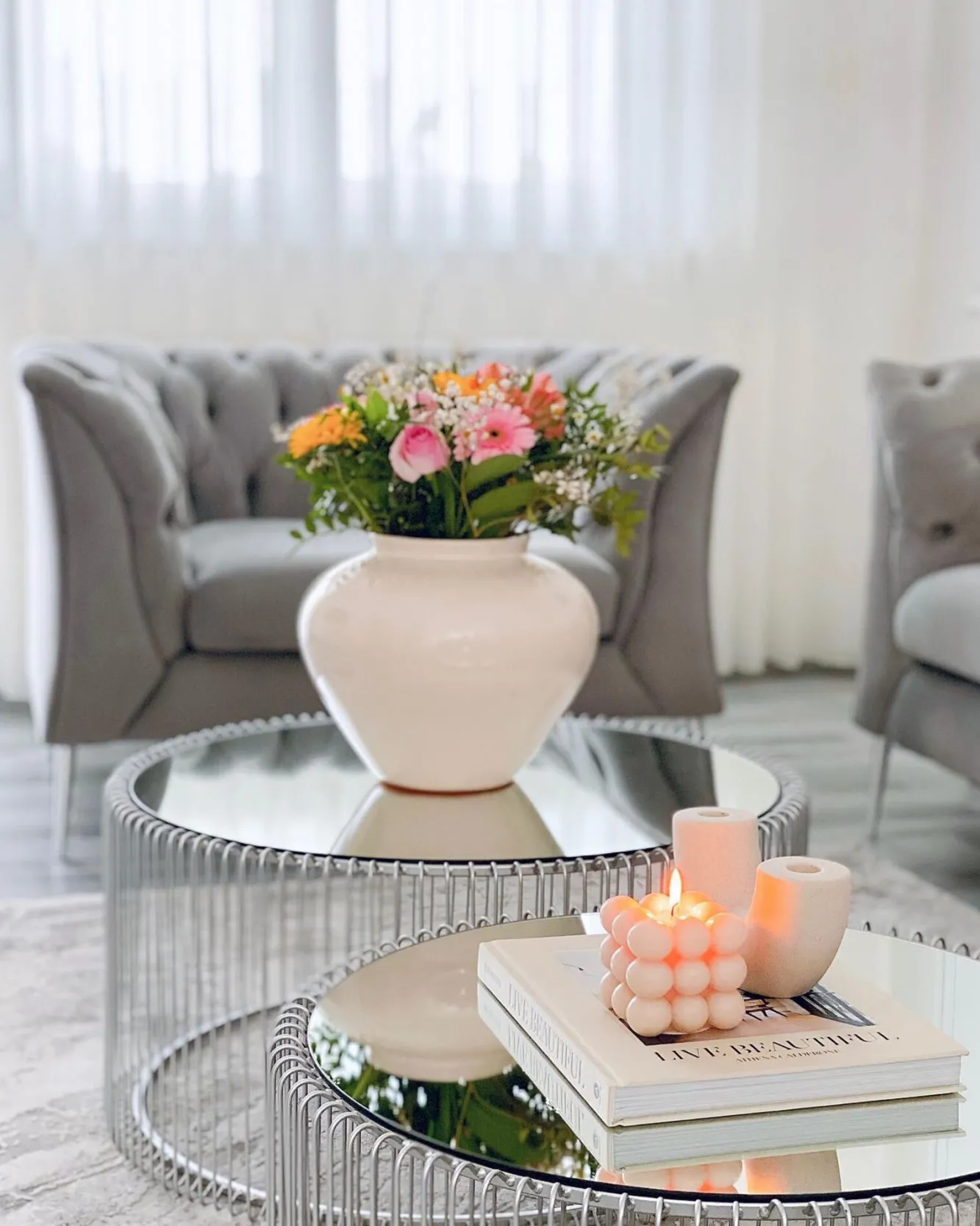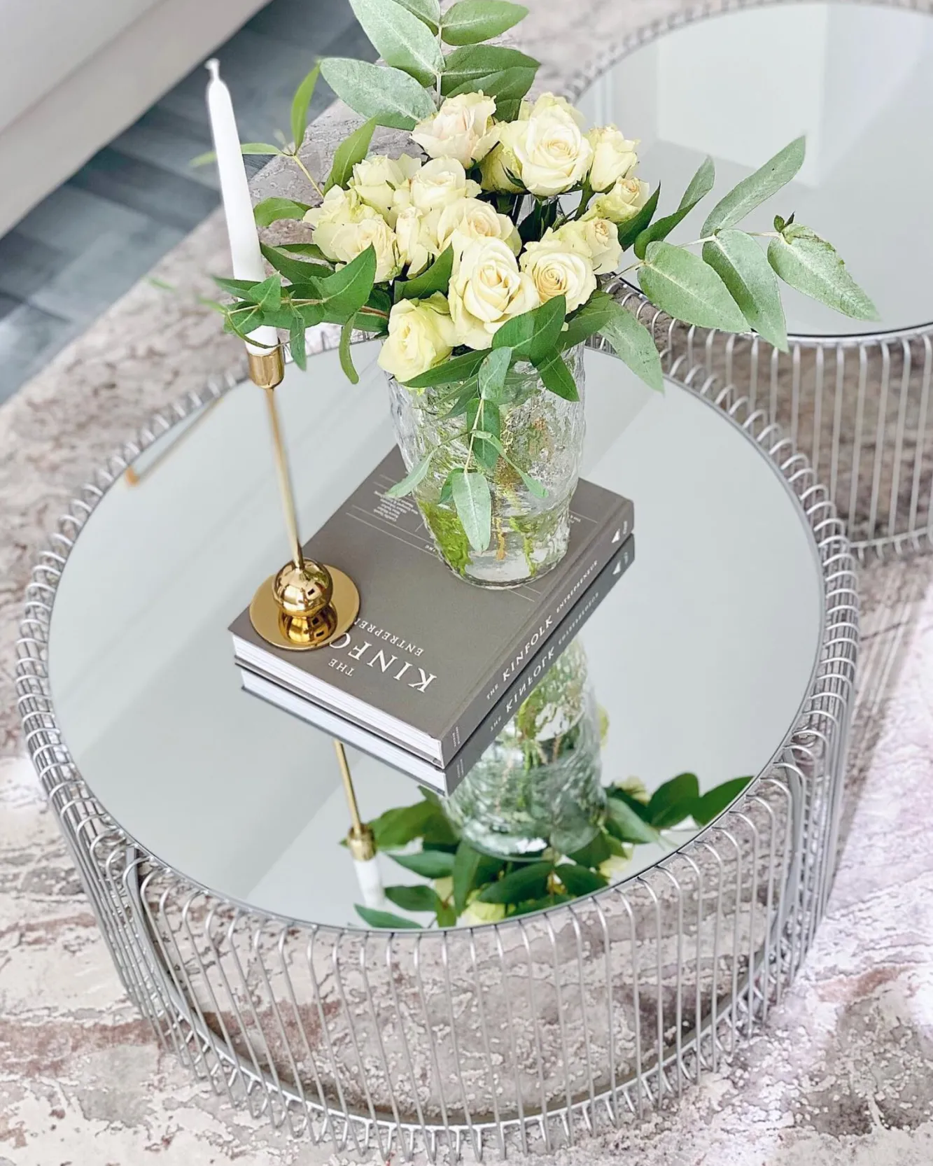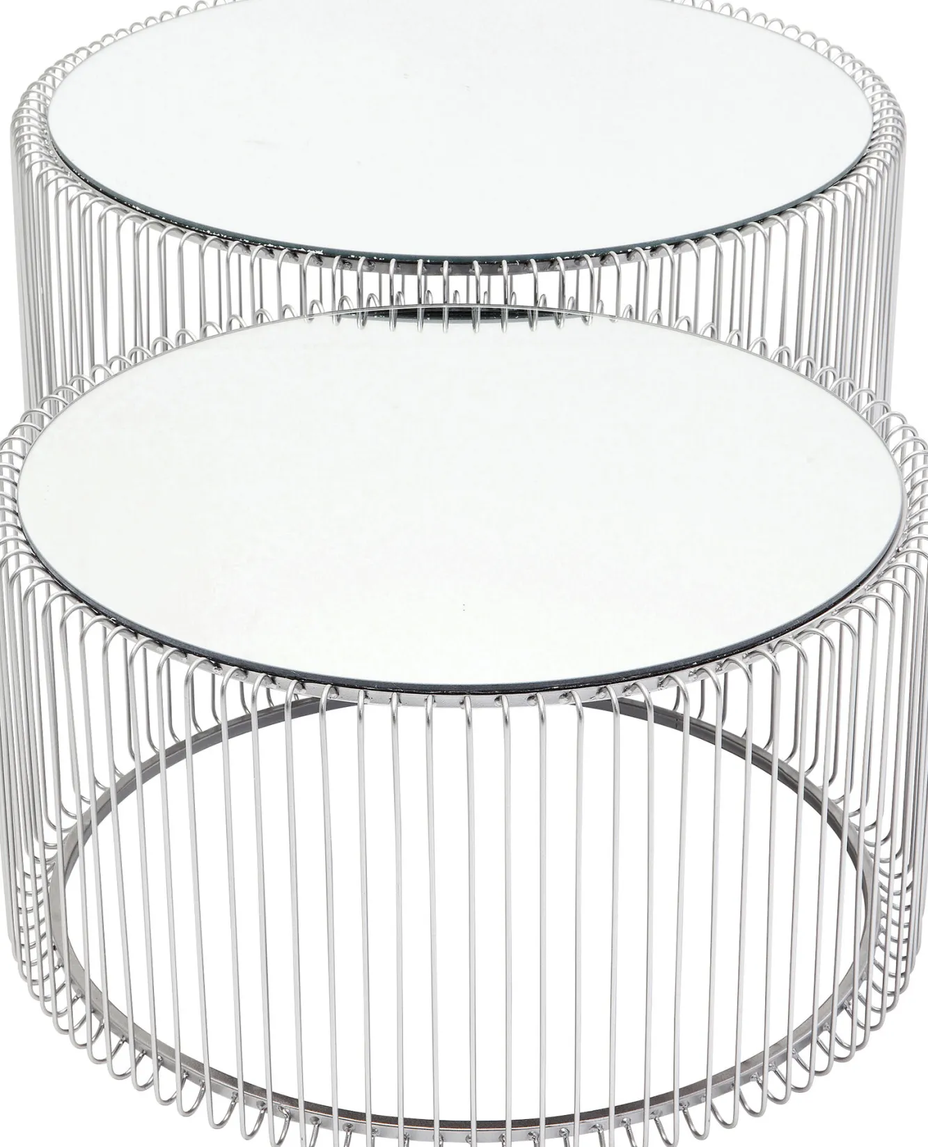 Zestaw dwóch stolików kawowych Wire srebrne Wymiary stolików (średnica x wysokość):- duży: 69,5 × 33,5 cm;- mał…