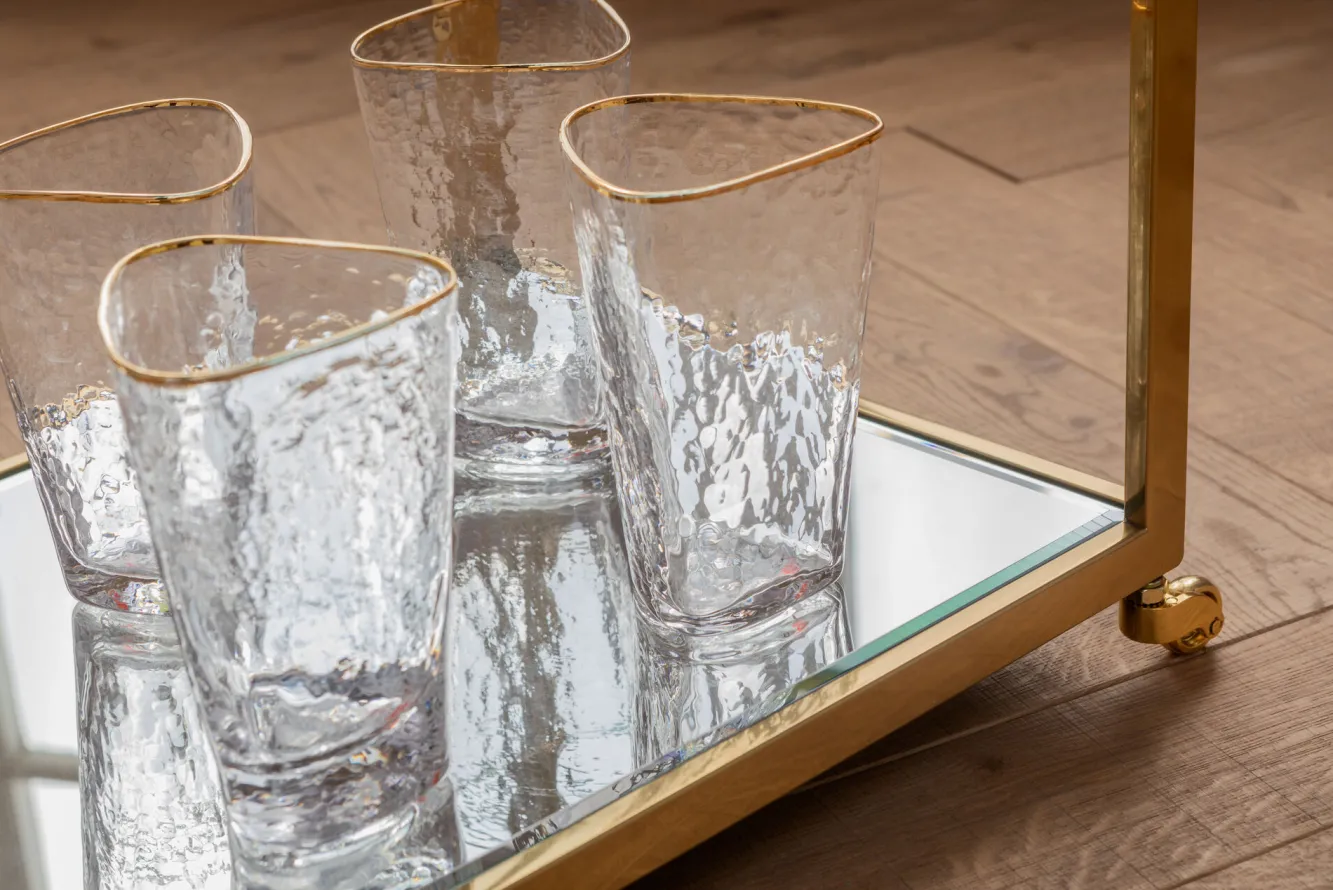 Barek Classy 50×33 cm złoty Blat, półka: szkło lustrzane.Rama: stal nierdzewna, wykończenie tytanowe.