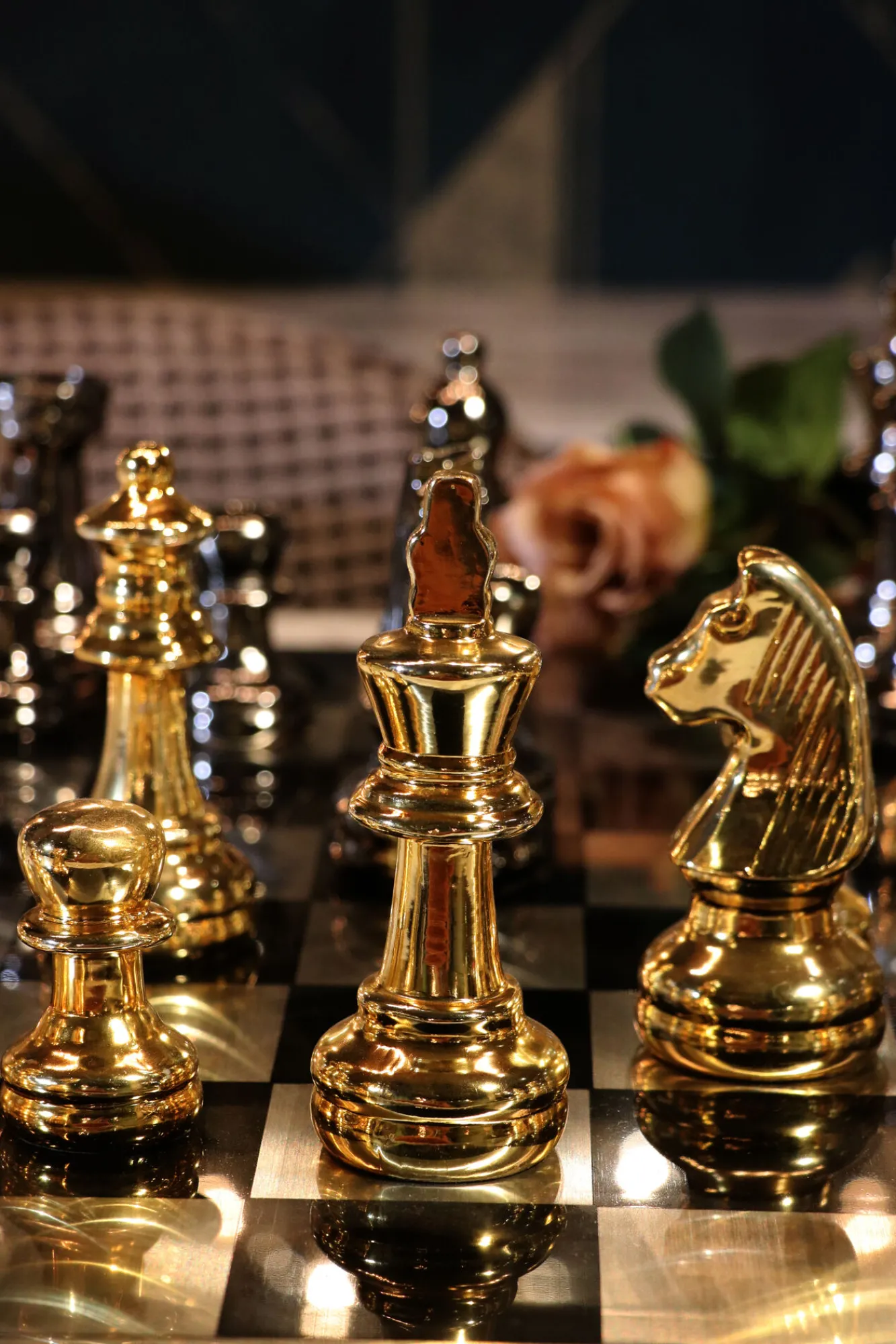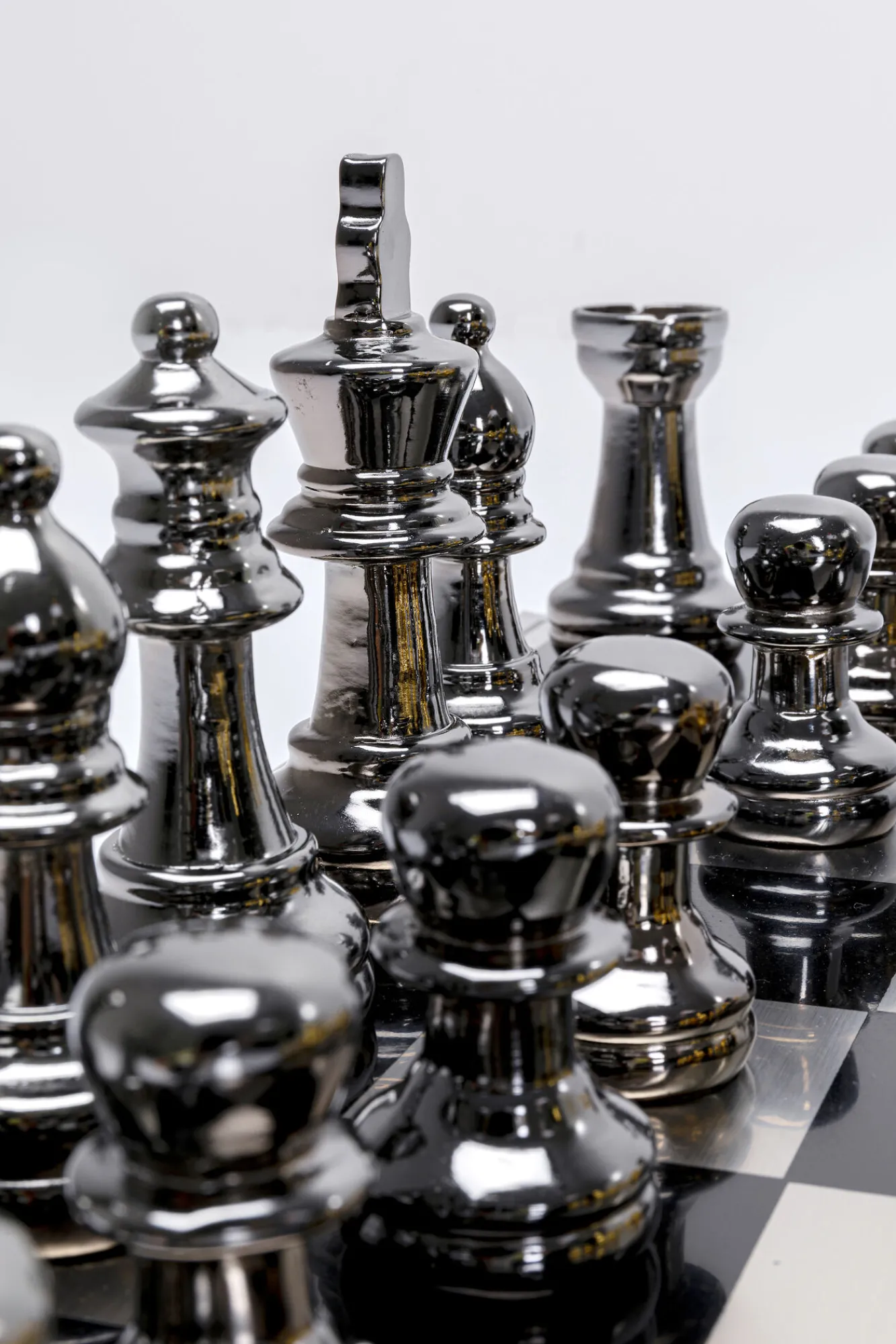 Dekoracja Chess 60×60 cm Figury szachowe mają wysokość od 7 cm (pionek) do 14 cm (król).Szachownica: stal nierdzewna…