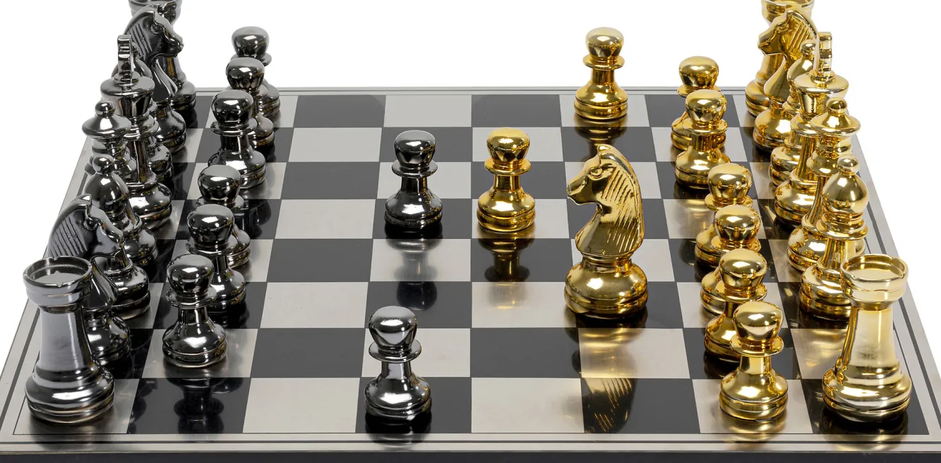 Szachownica: stal nierdzewna, płyta MDF lakierowana.