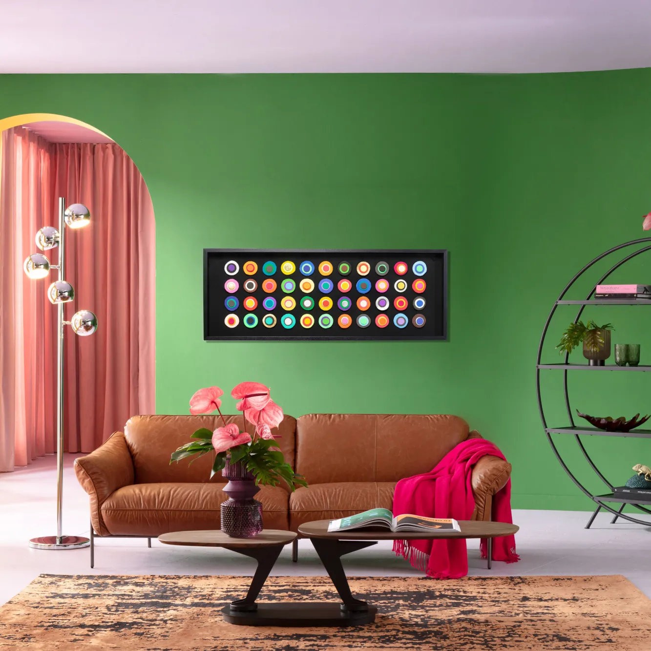 Dekoracja ścienna kolorowa terakota rama czarna 160×60 cm