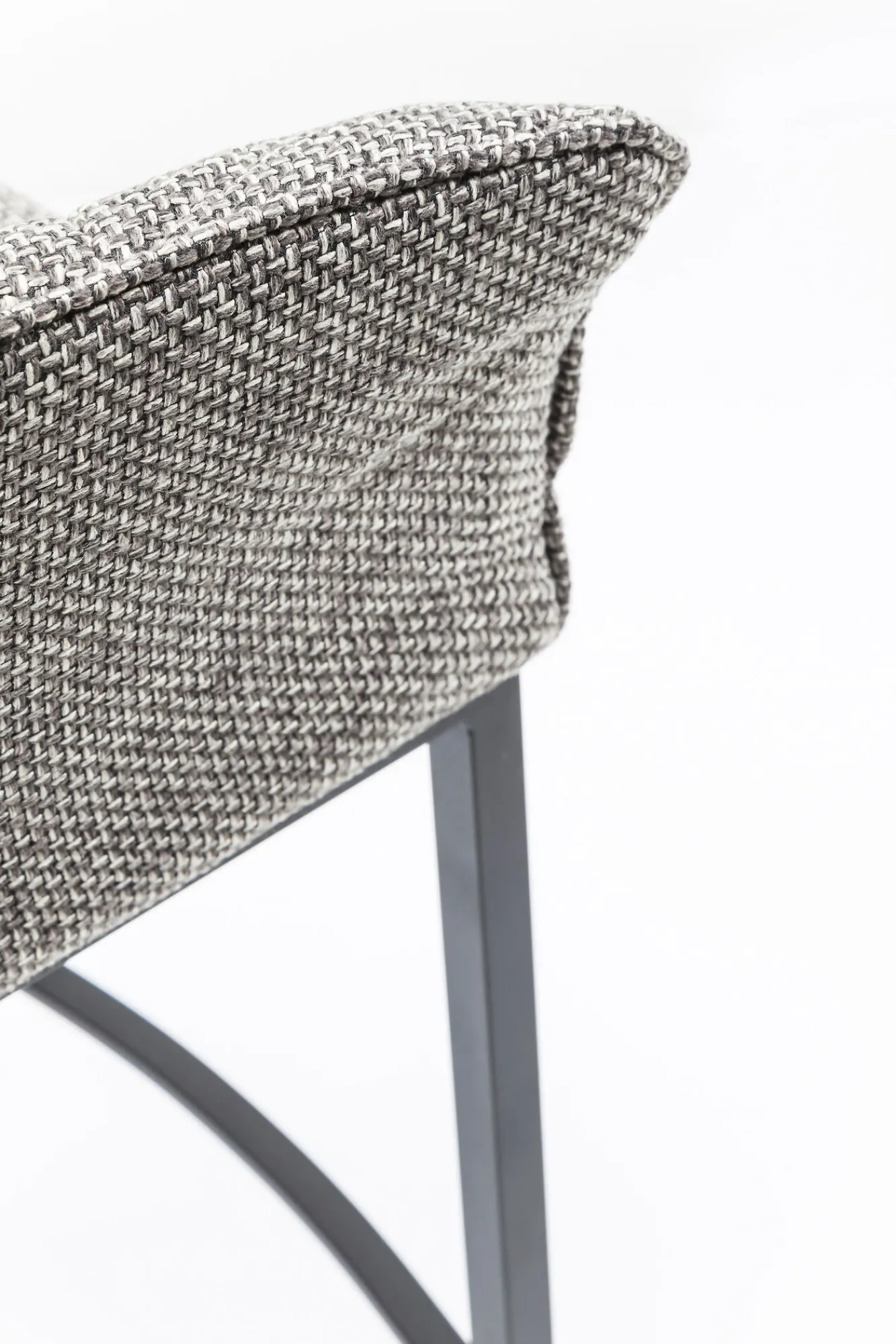 Nowoczesny tapicerowany hoker w stylu skandynawskim z kolekcji Thinktank dostępny jest w kilku wariantach – tutaj hoker szary na czarnych stalowych nogach.