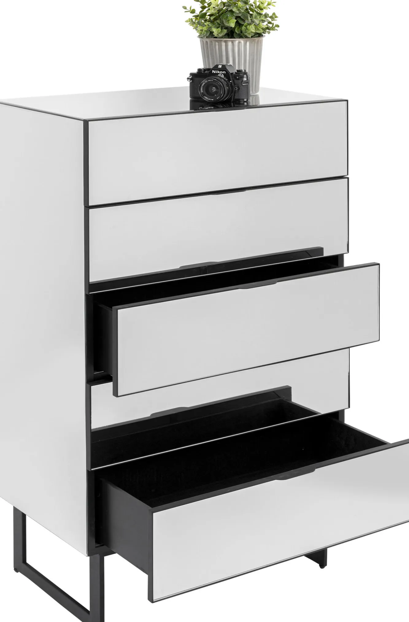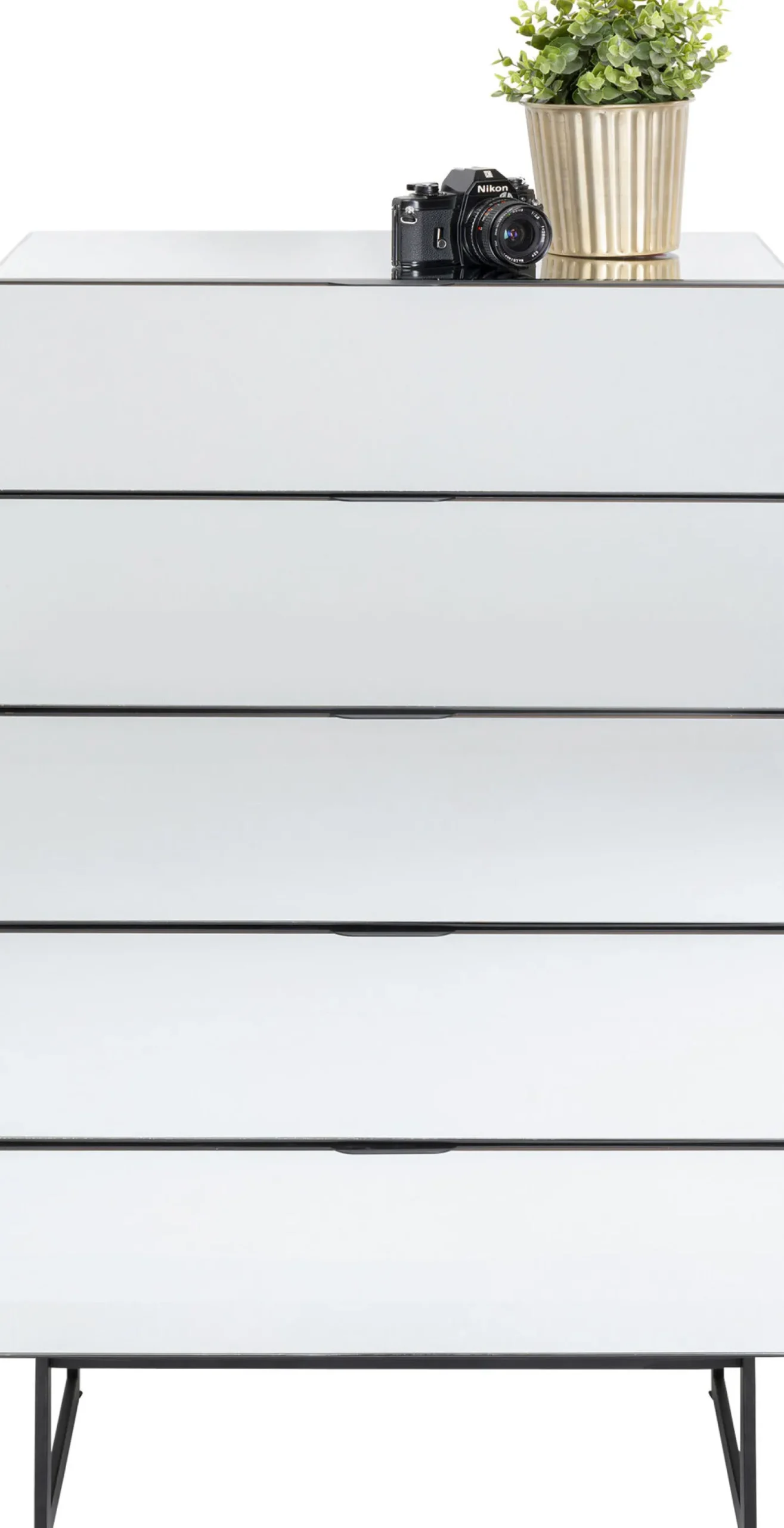 Komoda lustrzana z 5 szufladami nogi czarne 65×114 cm Nogi: stal malowana proszkowo.Korpus: płyta MDF.Uchwyty: stal mal…