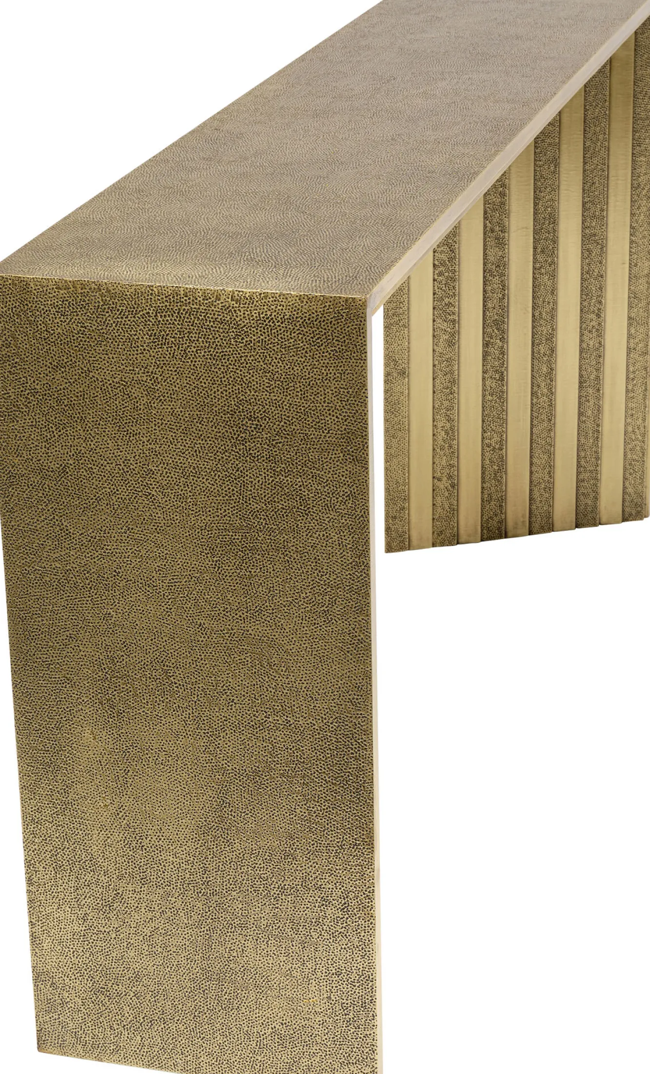 Konsola Malaga 160×35 cm złota Konstrukcja: płyta MDF lakierowana.Panele: stal mosiężna.Ręczne wykonanie. Każdy eg…