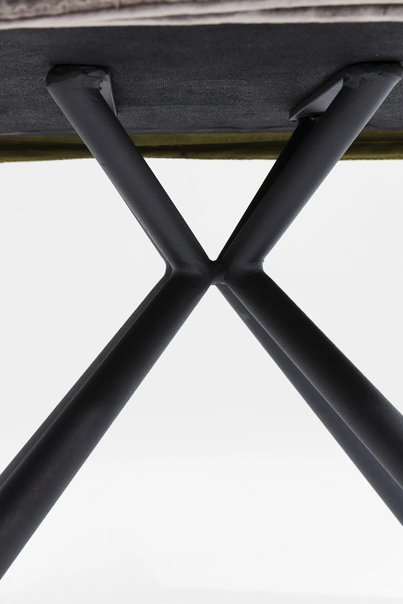 Jeśli wśród mebli poszukujecie tych o niecodziennym designie, wizjonerska firma KARE ma w tym temacie wiele do zaoferowania. To awangardowe krzesło welurowe w stylu nowoczesnym należy do bogatej i różnorodnej oferty tej niemieckiej marki, i ma spore szanse znaleźć się wśród ikonicznych projektów, podobnie jak wielokrotnie inne modele jej autorstwa. Tutaj producent przedstawia swoją interpretację w kwestii krzeseł tapicerowanych. Prezentowany przykład stanowi niebanalną kombinację dwóch poduszek oraz metalowych nóg typu stojak. Razem tworzą wygodną całość, niezwykle gustowną i szykowną. Welurowe obicie daje poczuć w dotyku przyjemną miękkość i niesie ze sobą komfort użytkowania. Ale nie tylko – czy zwróciliście uwagę na jego lekko mieniącą się powierzchnię? Plusz rewelacyjnie współpracuje ze światłem, dzięki czemu jest ceniony ze względu na swój dyskretnie dekoracyjny charakter. Takie krzesło tapicerowane zadowoli zarówno miłośników sprzyjającej odpoczynkowi przytulności, jak i tych podążających za modnymi trendami.