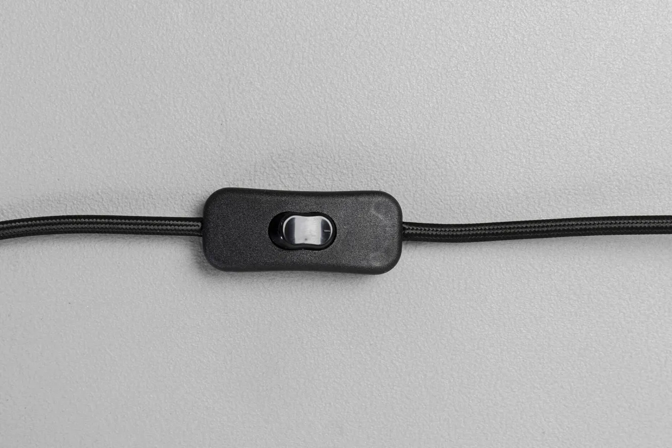 Abażur: polistyren (wewnątrz), tkanina – poliester (na zewnątrz).