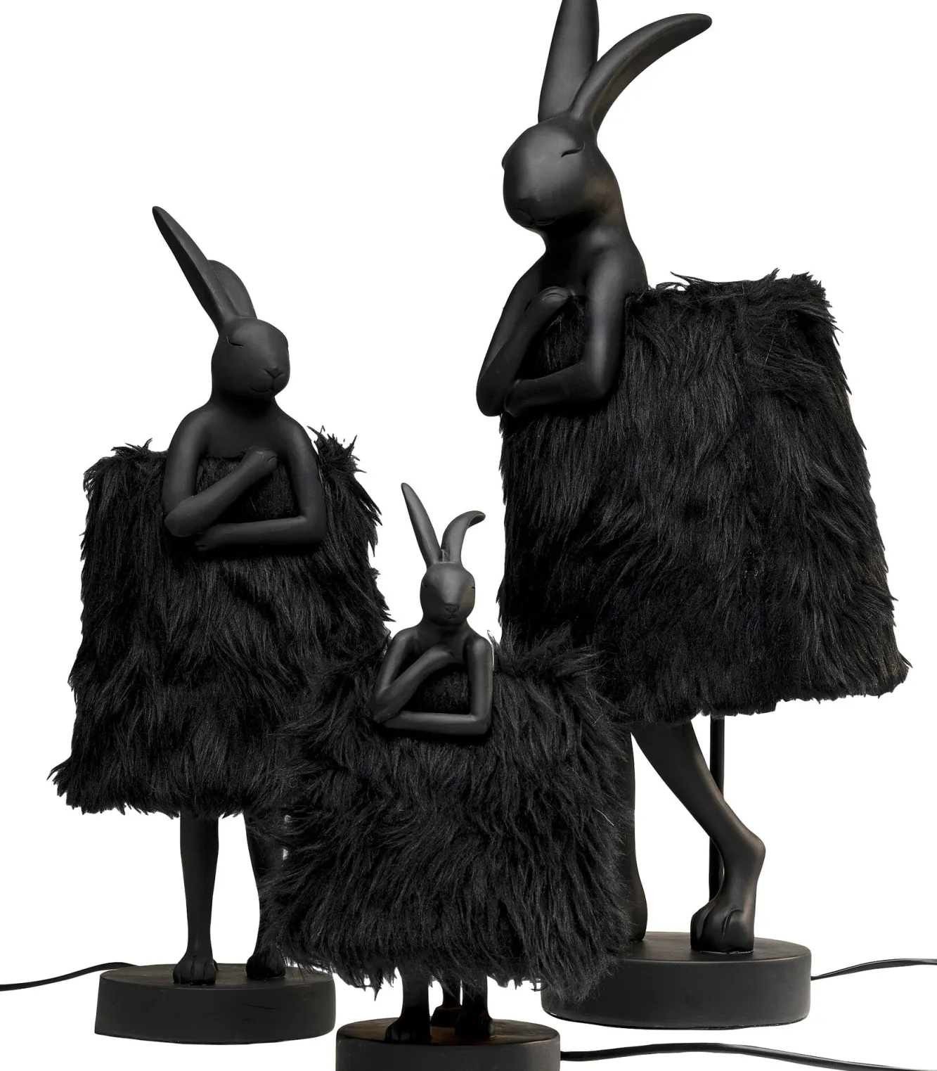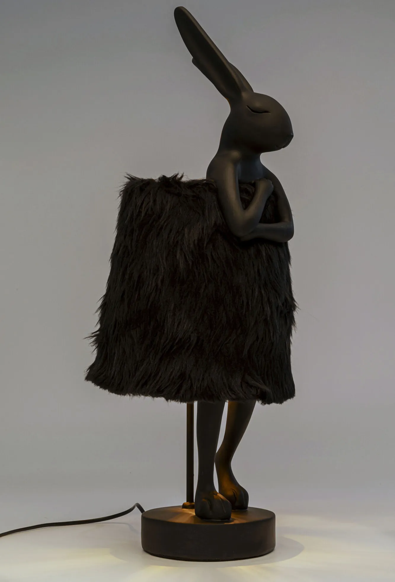 Lampa stołowa czarna królik abażur futrzasty 68 cm Dekoracja (królik): polirezyna.Stelaż: stal malowana proszkowo.A…
