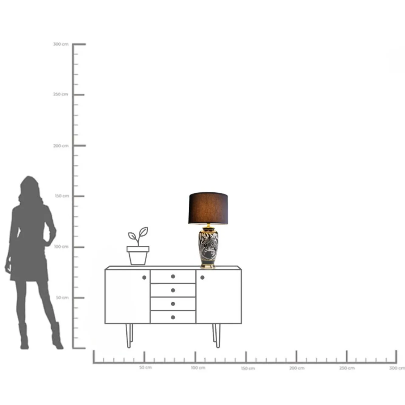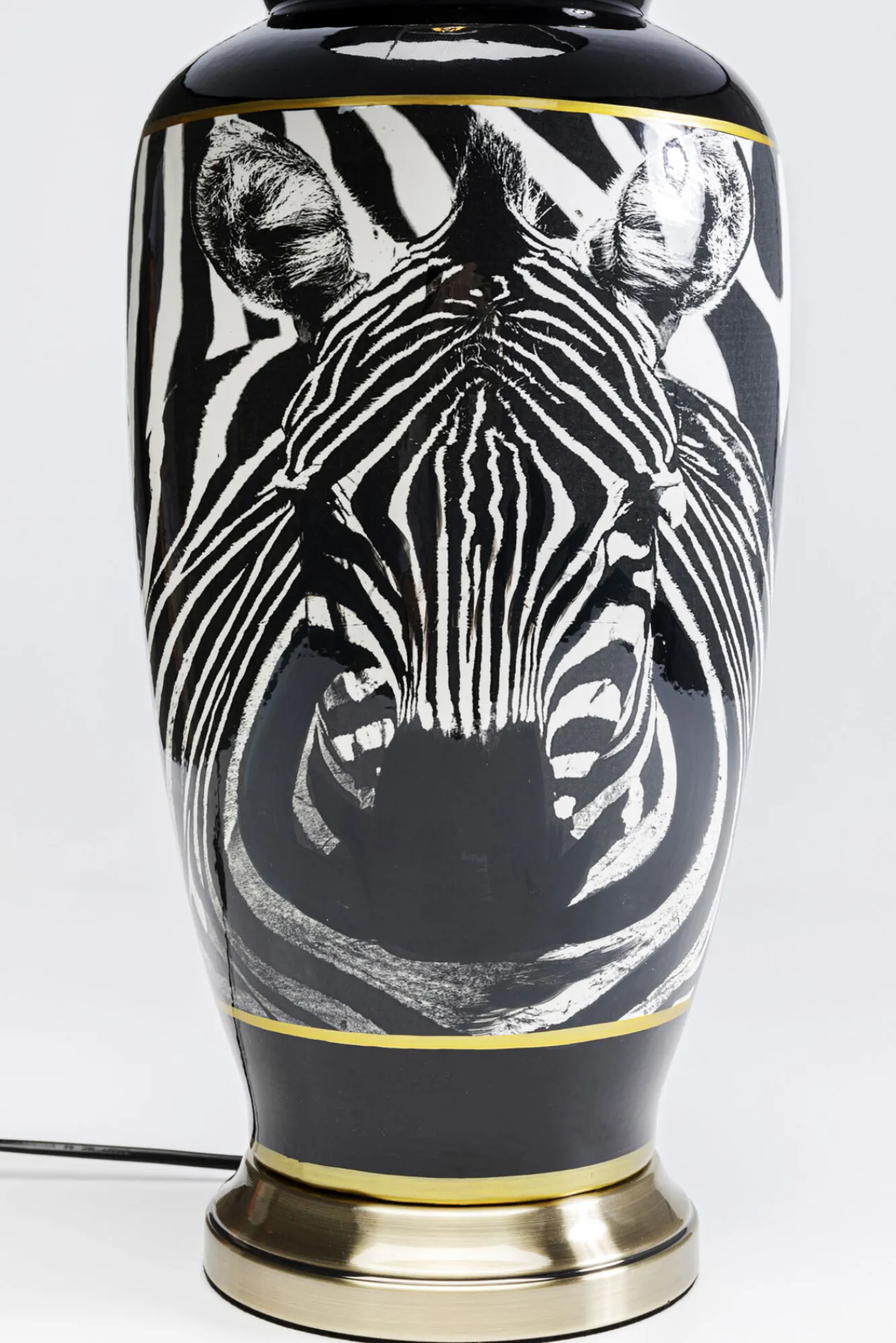 Lampa stołowa czarno-biała motyw zebry 71 cm podstawa z porcelany
