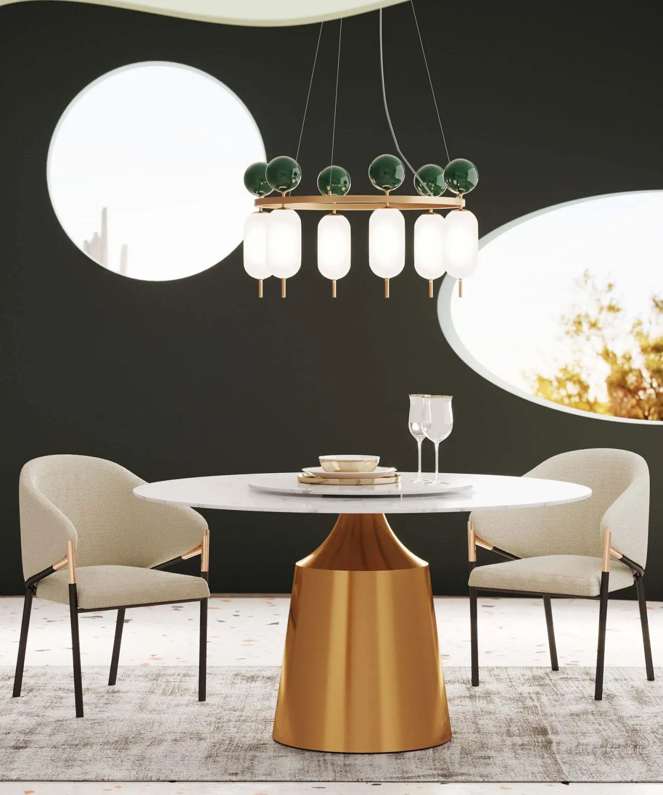 Lampa wisząca nowoczesna złota klosze szklane białe Ø68 cm