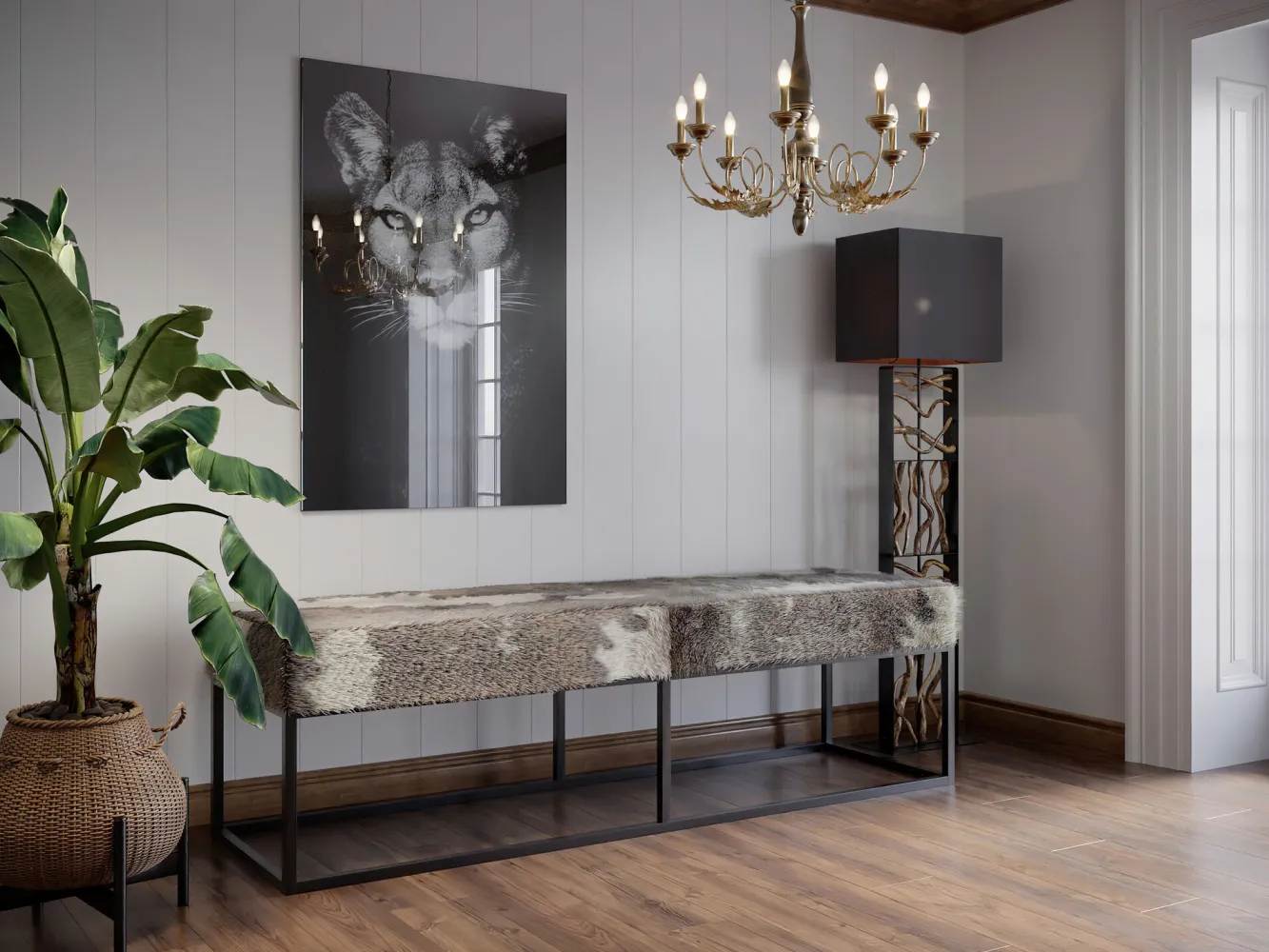 Ławka Country Life marki Kare Design na stalowych nogach.