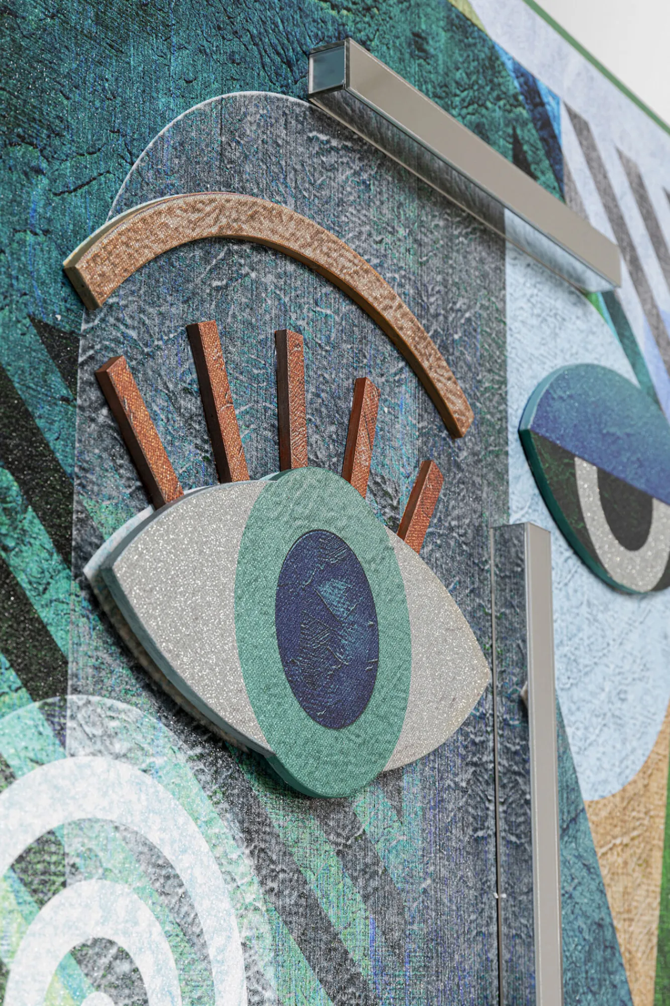 Obraz kolorowy abstrakcyjna twarz 100×150 cm ręczne wykonanie Stelaż: płyta MDF.Front: płótno, farby akrylowe, papi…