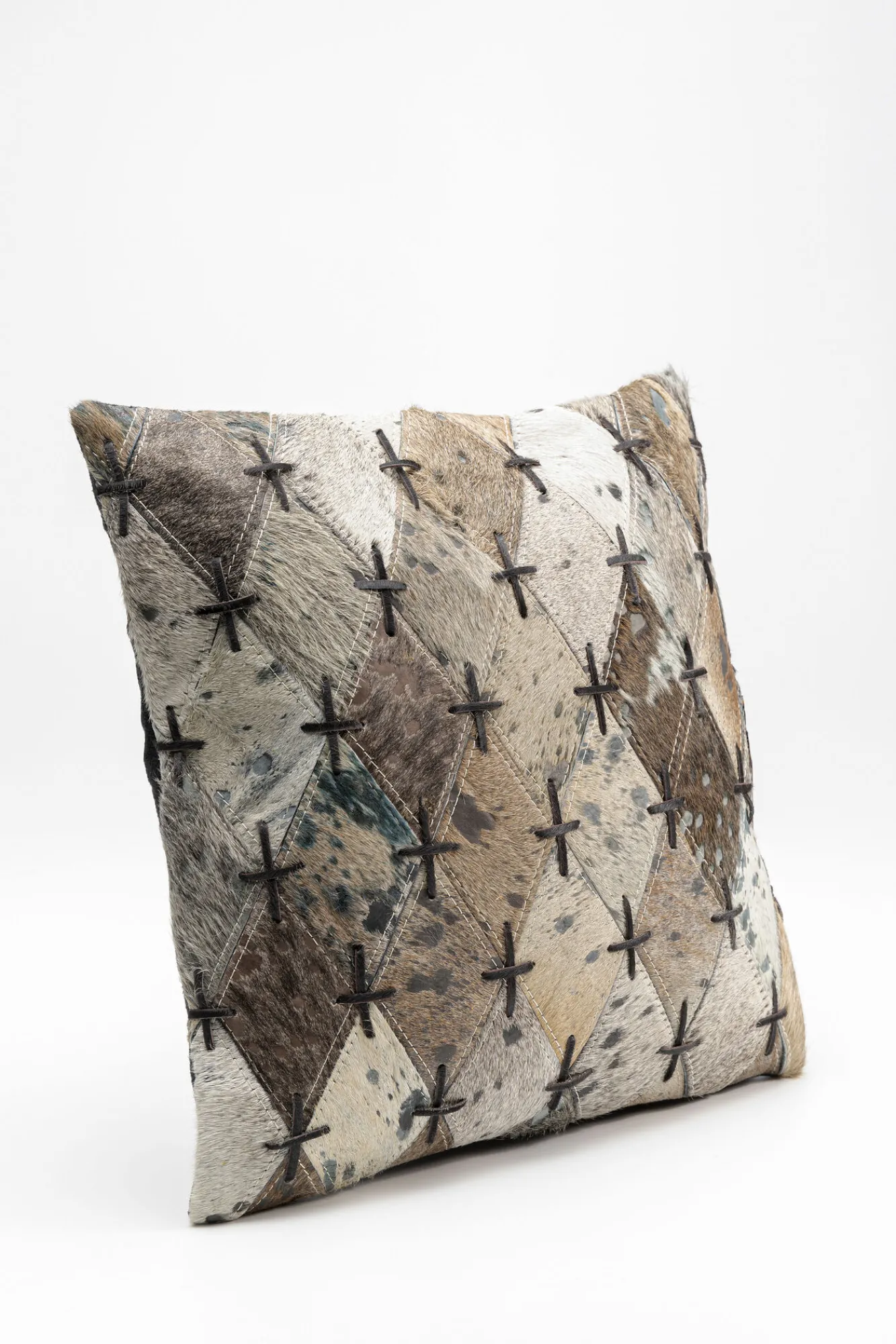 Poduszka dekoracyjna karo skóra naturalna 40×40 cm