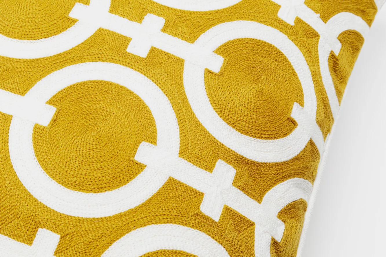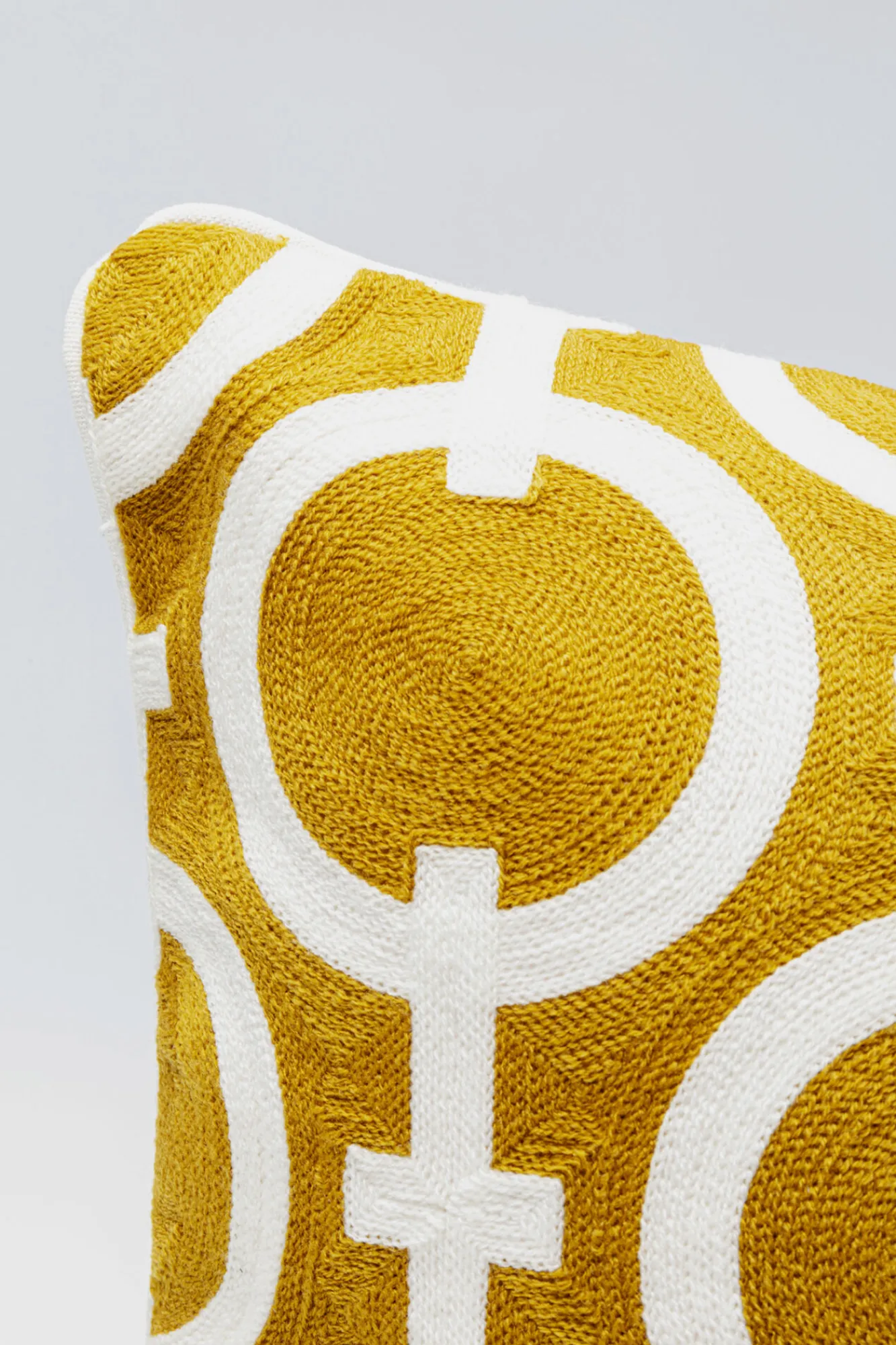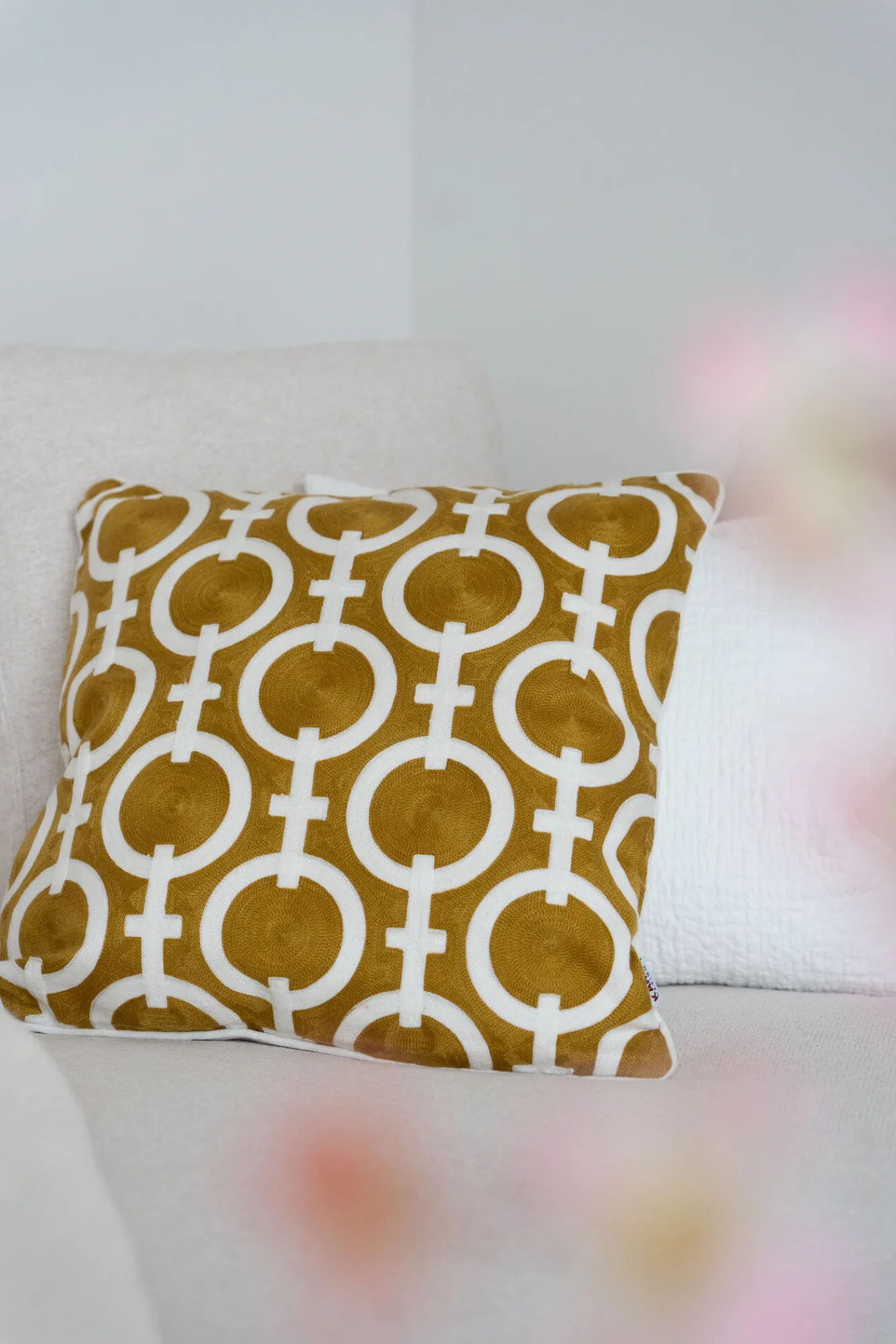 Poduszka dekoracyjna złota w białe wzory 50×50 cm Zamek błyskawiczny.