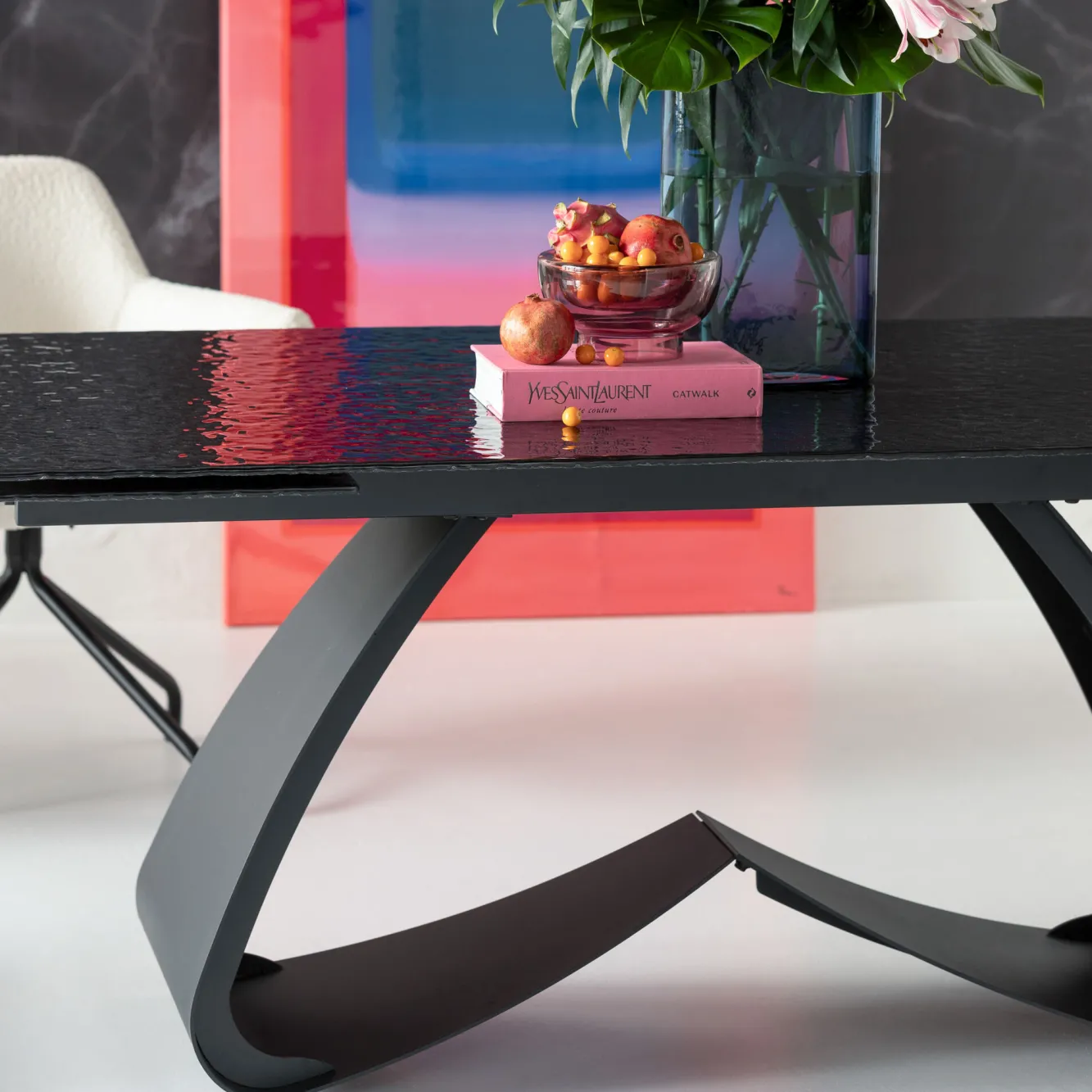 Stół rozkładany do jadalni w kolorze czarnym szkło i stal 180-260×95 cm Rama, nogi: stal malowana proszkowo.Blat: sz…