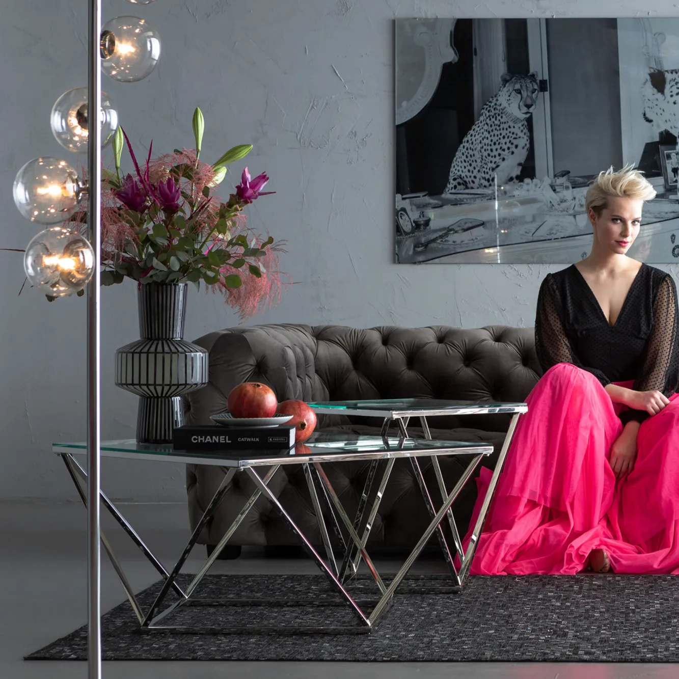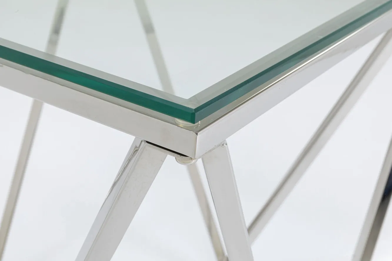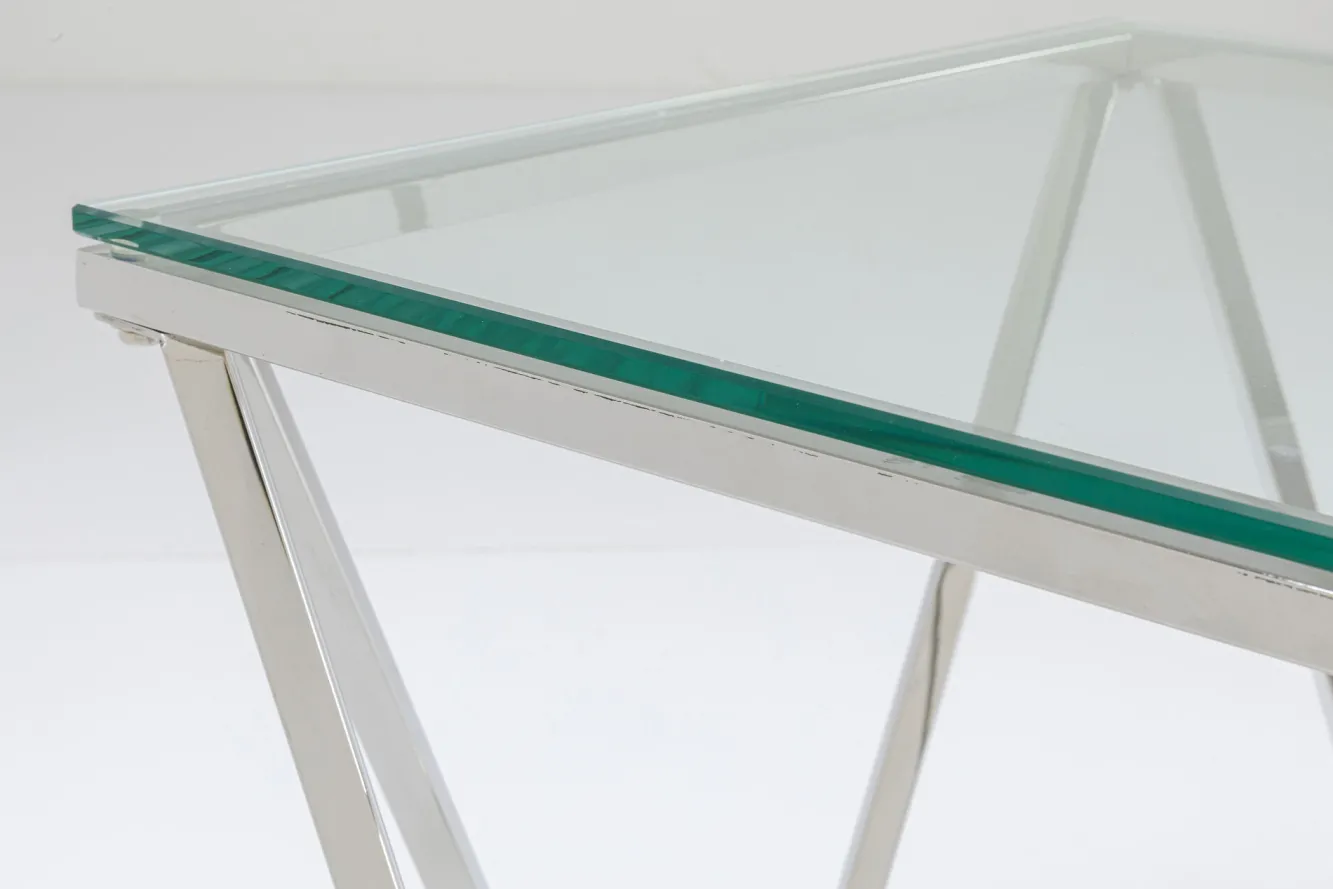Stolik kawowy Cristallo 50×50 cm srebrny Rama: stal nierdzewna polerowana,Blat: szkło hartowane.Produkt jest wykonywany…
