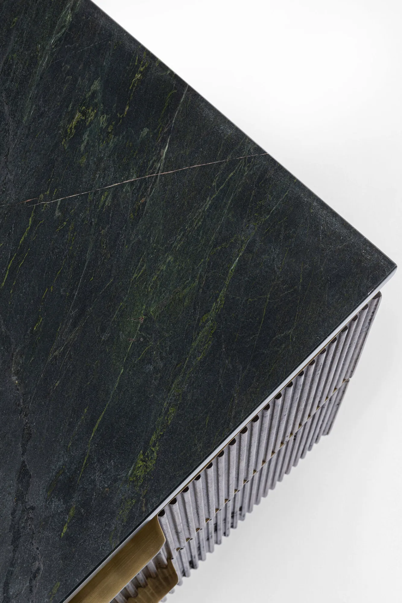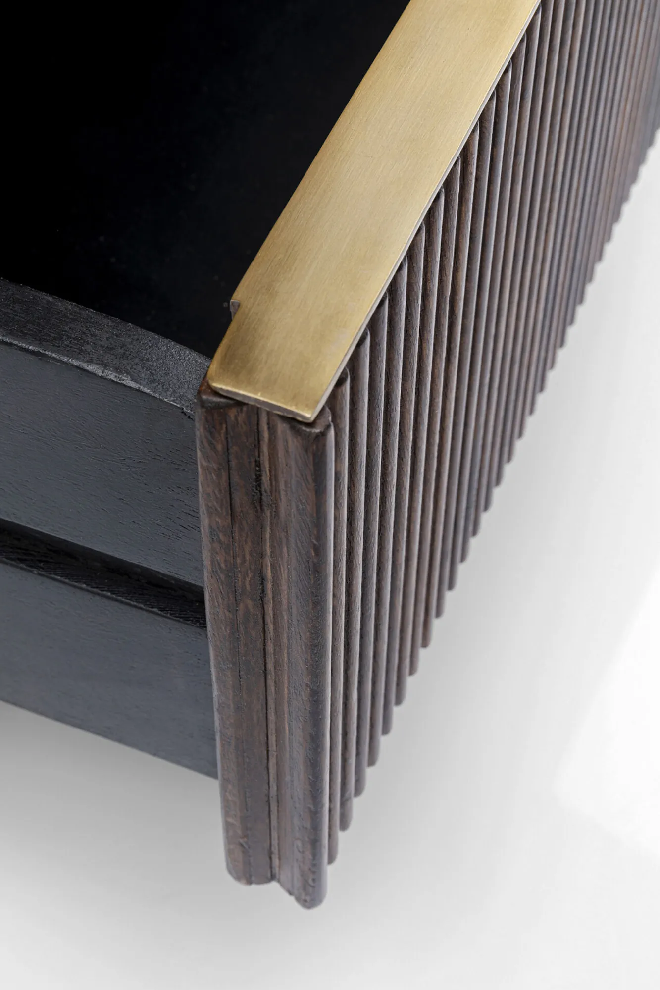 Złota dekoracja między blatem, a frontem: mosiądz szczotkowany.
