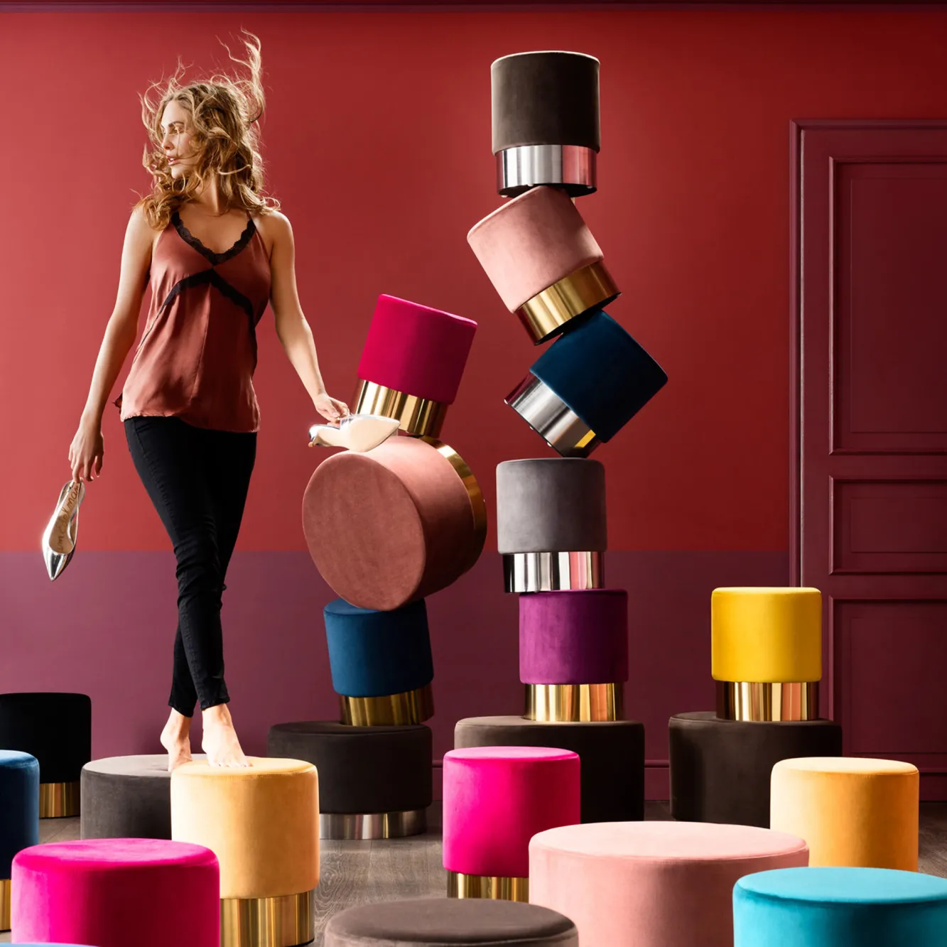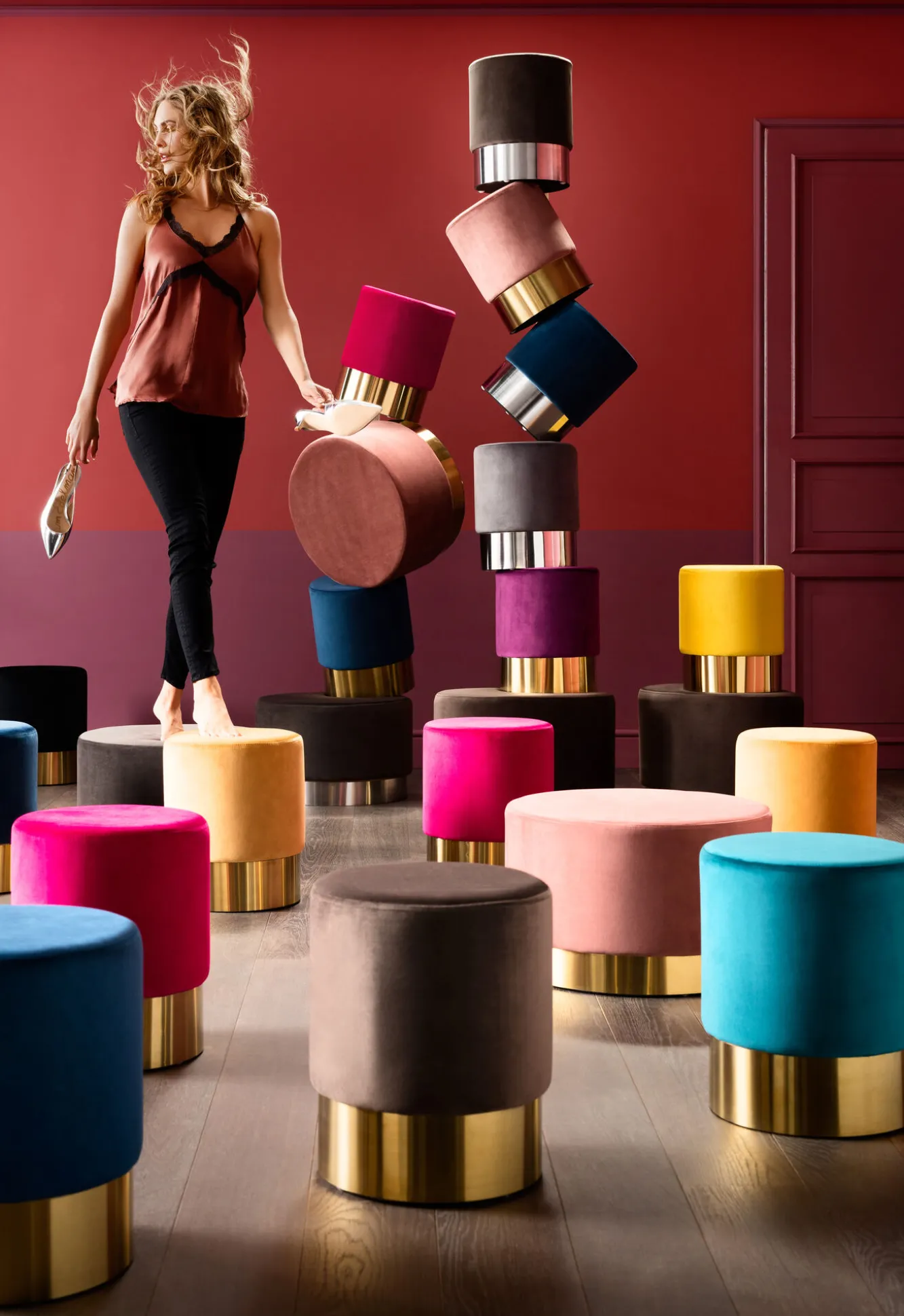 Tapicerowane pufy i taborety z serii Cherry to jedna z najnowszych propozycji KARE, która przypadnie do gustu nie tylko wielbicielom klasycznych form, ale i miłośnikom estetyki w typie glamour. Wchodzące w skład tej kolekcji modele podtrzymano na podstawach ze szczotkowanej stali i pokryto różnymi materiałami, wśród których znajduje się m.in. gładki i przyjemny w dotyku welwet, futro i kolorowe tkaniny we wzory. Okrągłe, lekkie i wygodne – meble z tej serii z powodzeniem odnajdują się w roli dodatkowego siedziska, jak i efektownej dekoracji.