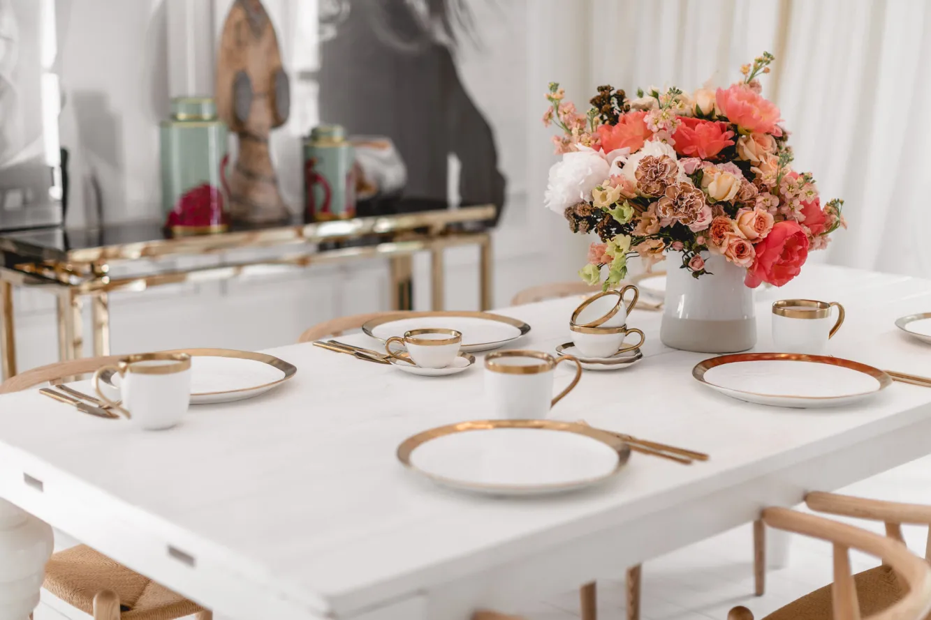 Bell to seria elementów zastawy stołowej, która z pewnością zwróci uwagę miłośników eleganckiej estetyki. Wchodzące w skład tej kolekcji akcesoria jadalniane to przede wszystkim miski, kubki, filiżanki z podstawkami i talerze, wśród których można znaleźć zarówno talerze deserowe, jak i te przeznaczone do serwowania owoców i ciast. Zastosowanie biało – złotej kolorystyki w połączeniu z jednolitym motywem wzorniczym i lekko falistymi brzegami sprawia, że tego typu zastawa może być z powodzeniem użytkowana na co dzień, jak i dopełniać wystroju stołu jadalnianego podczas bardziej uroczystych okazji.