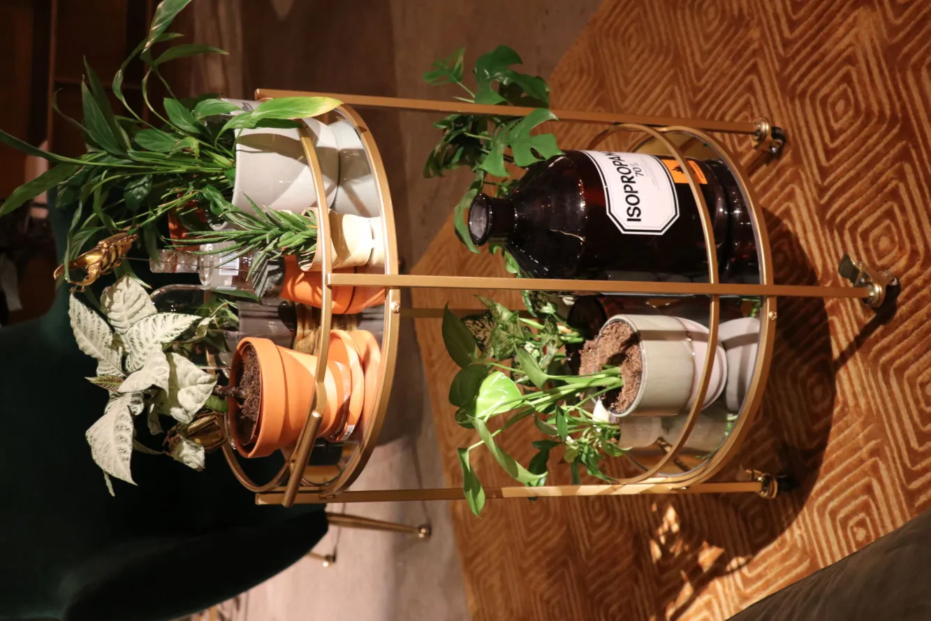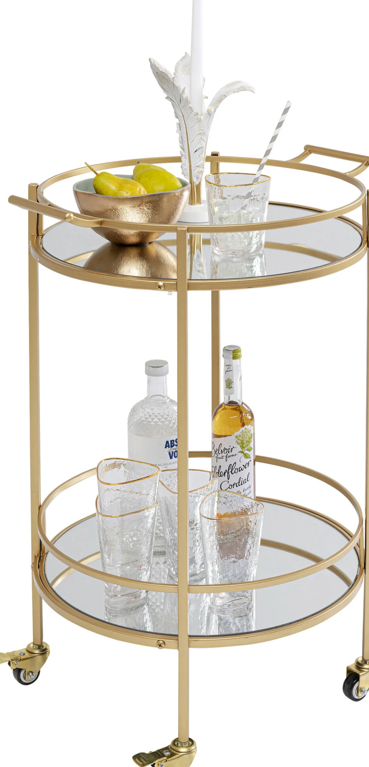 Wózek barowy Emilia 57×78 cm złoty – półki lustrzane