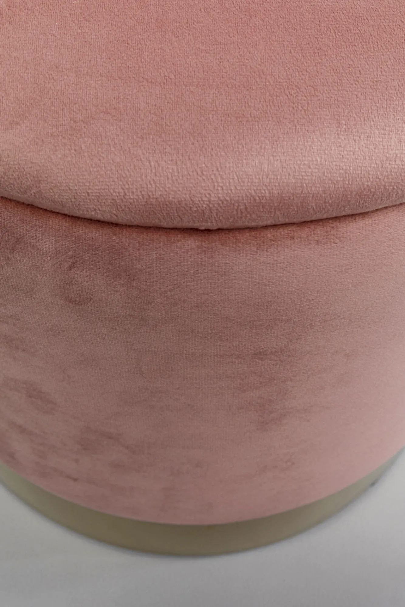 Zestaw dwóch puf tapicerowanych ze schowkiem różowe podstawy złote