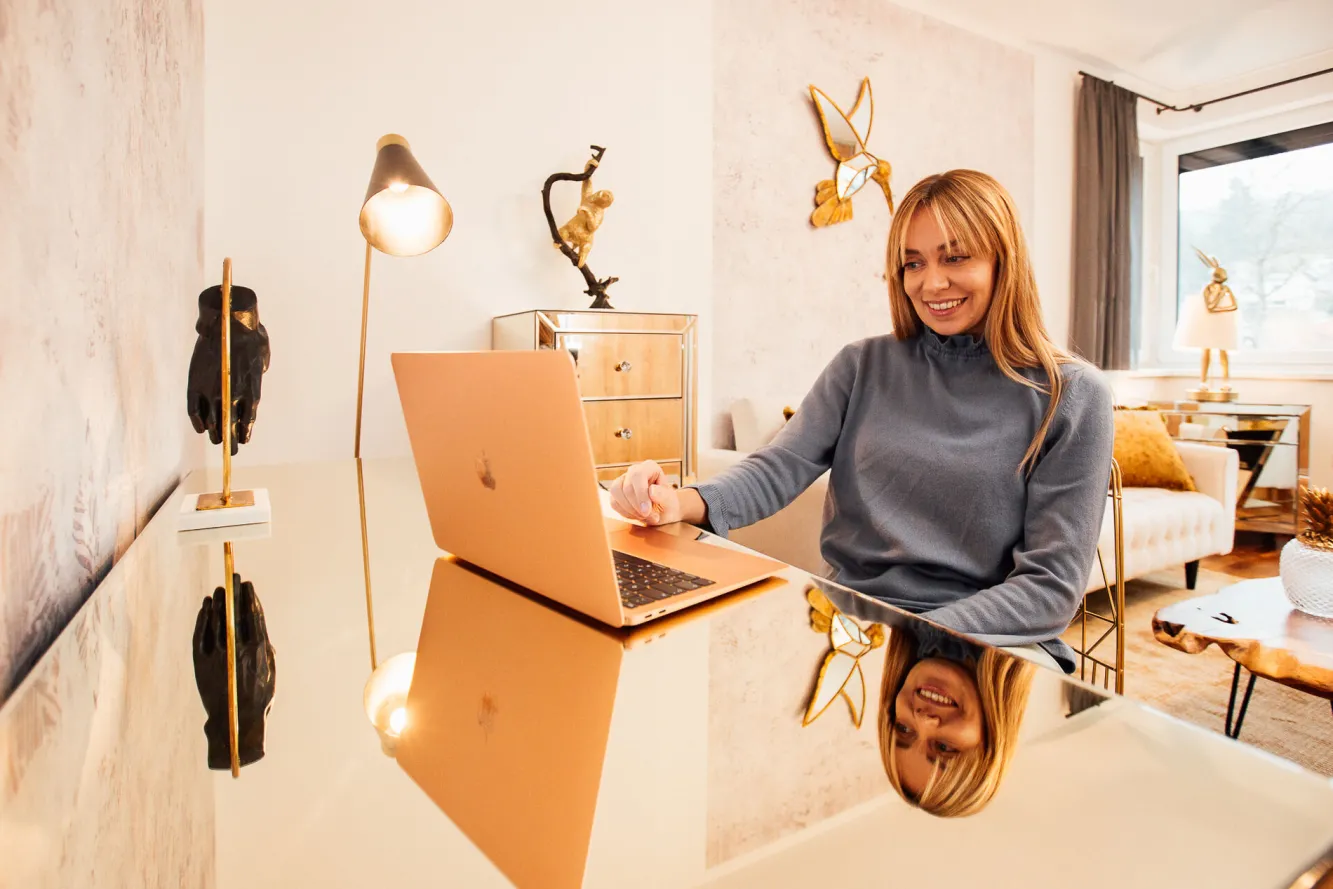 Nowoczesne lustrzane biurko ze szkła w stylu glamour z serii Luxury Champagne to czytelny sygnał dla wszystkich wielbicieli wytrawnych aranżacji. Sygnowane jest autorskim podpisem renomowanej firmy KARE, słynącej z wyrafinowanego designu. Wizjonerska niemiecka marka już od przeszło trzech dekad przoduje w inicjowaniu nowych trendów, popularyzowaniu ikon stylu czy wprowadzaniu innowacyjnych projektów. Tutaj mamy do czynienia z ekskluzywnym wzornictwem o luksusowym charakterze. Lustrzana powierzchnia oraz błyszczące niczym drogocenne klejnoty szklane uchwyty nadają złotemu biurku Luxury Champagne wyraźnej tożsamości. Bezsprzeczny szyk i wizualne wysmakowanie prezentowanego mebla ze szkła udzielą się całemu wnętrzu.