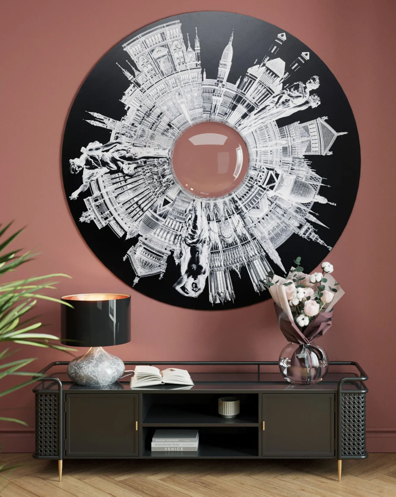 Dekoracja ścienna City Pupil Ø160 cm czarno-biała
