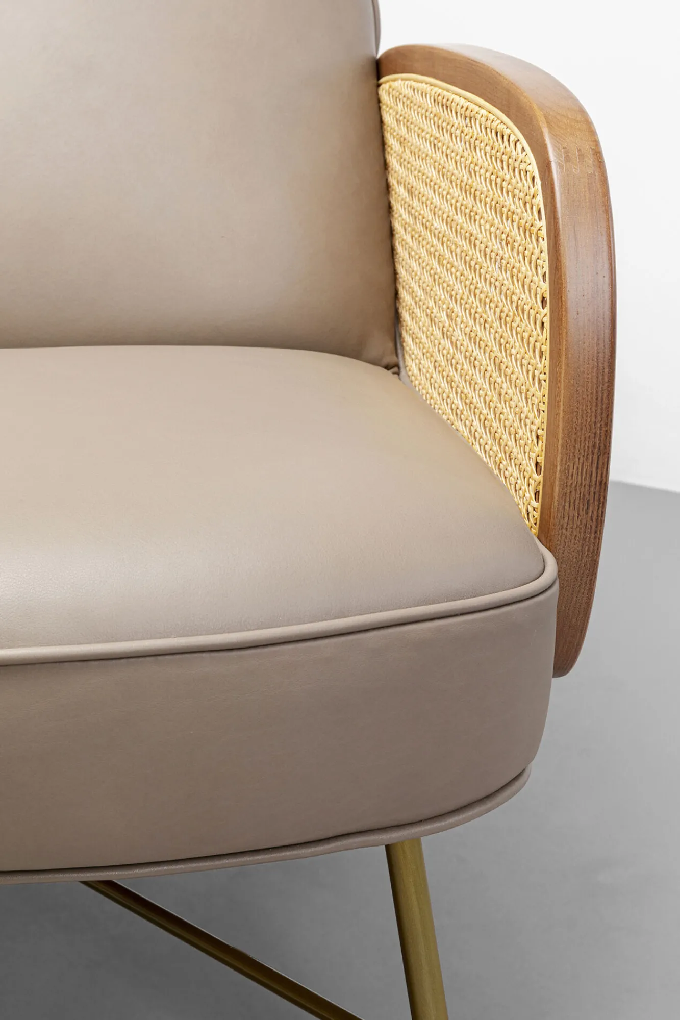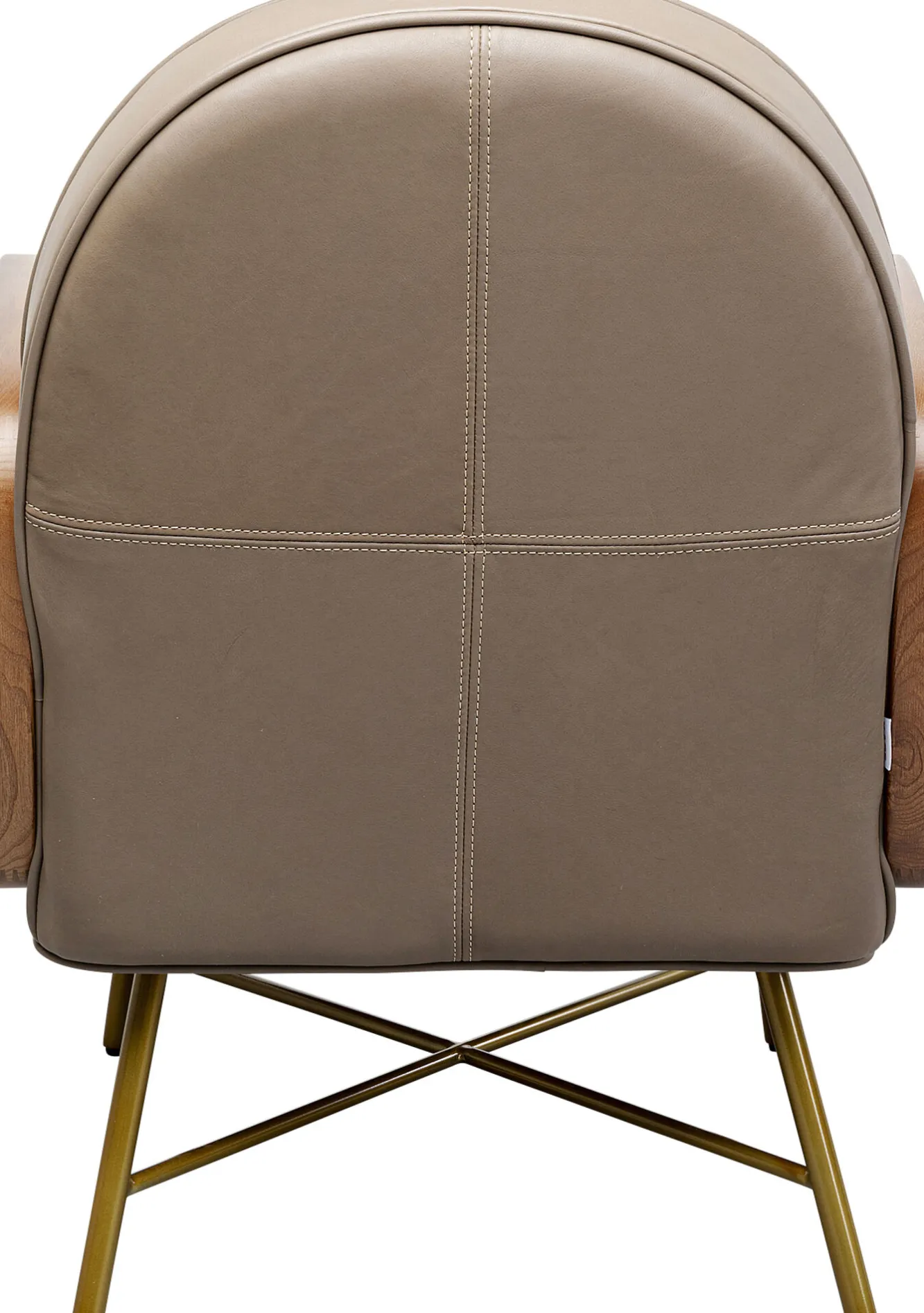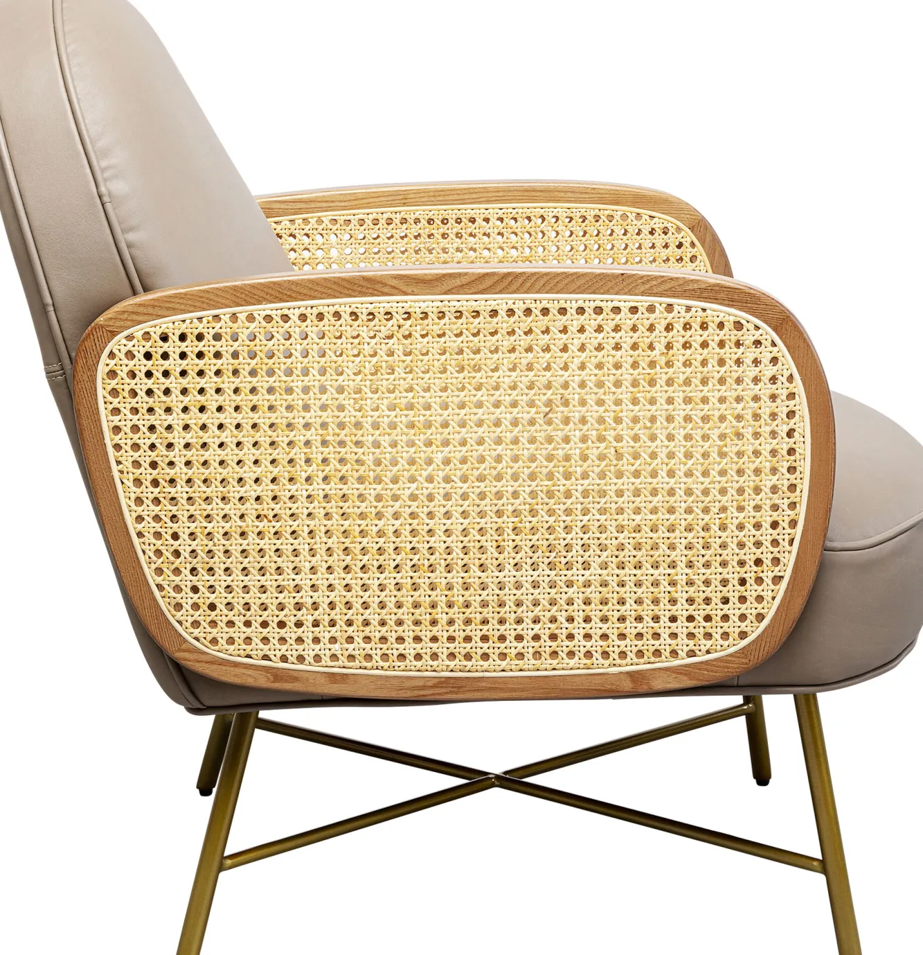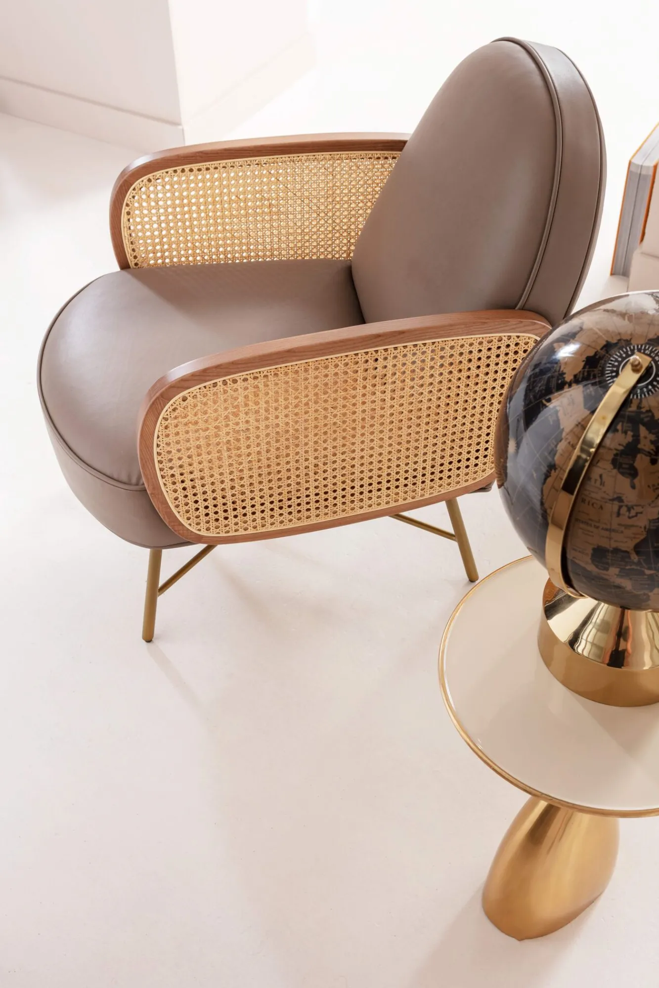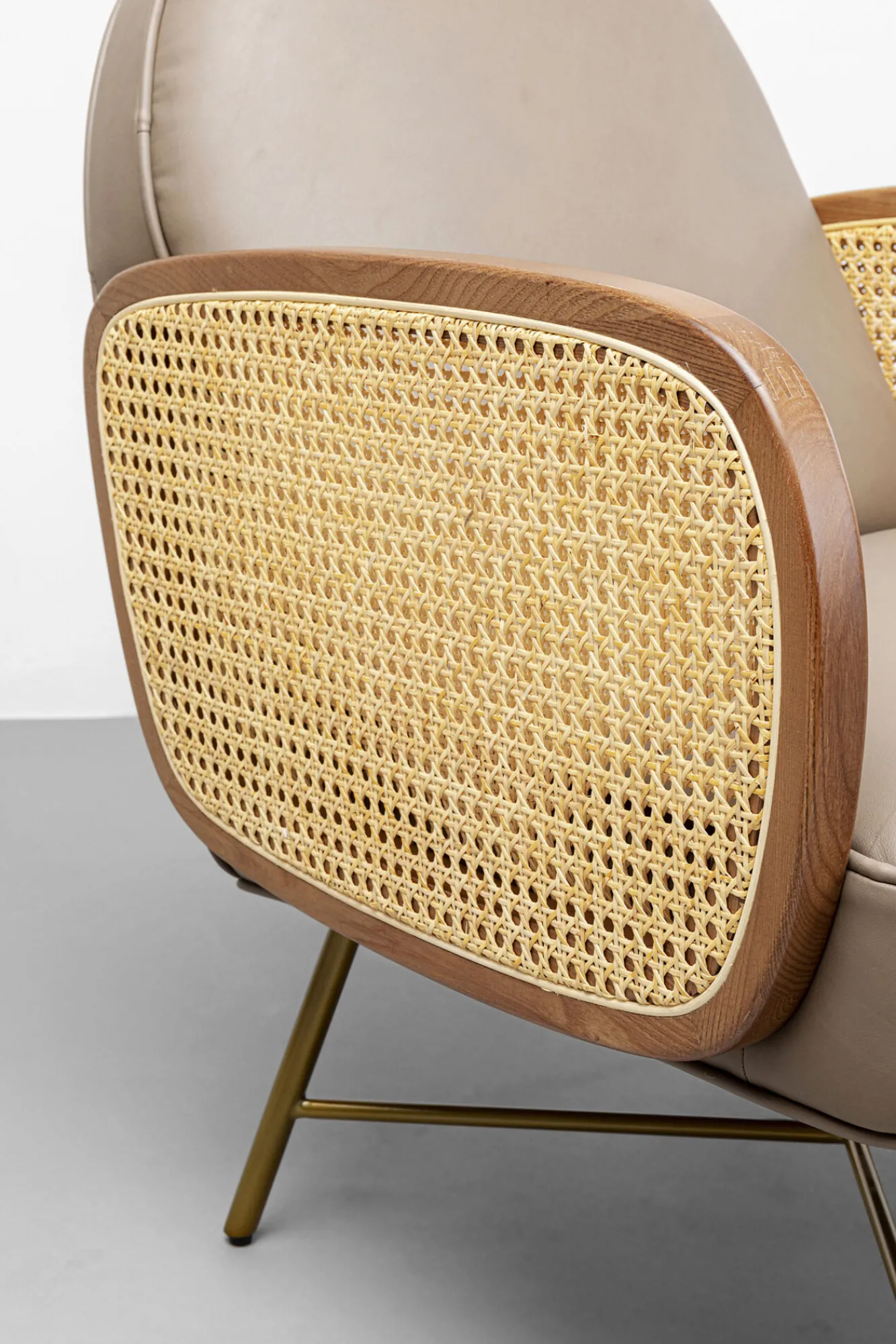 Fotel boho szary skóra semianilinowa podłokietniki naturalno-brązowe 60×80 cm