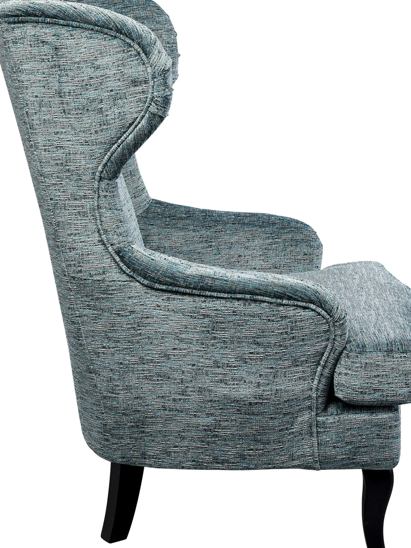 Fotel uszak wysoki niebieski nogi czarne drewniane 83×112 cm Nogi: drewno brzozowe lakierowane.Tapicerka: 100% poliester…