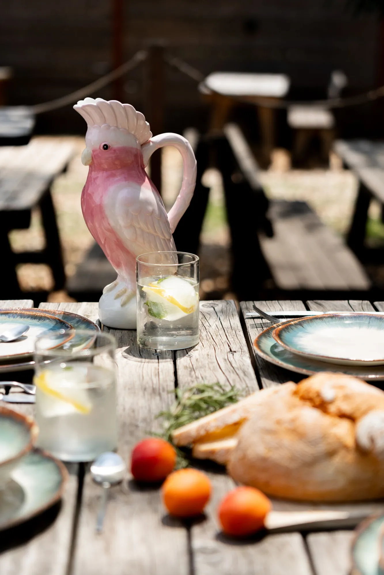 Karafka ceramiczna biało-różowa egzotyczny ptak 30 cm